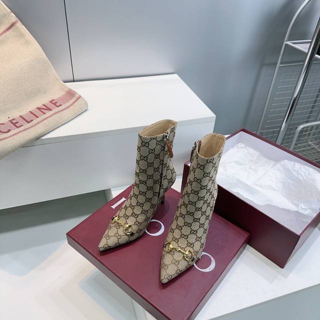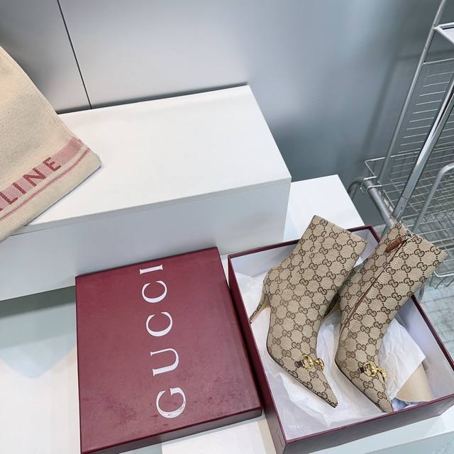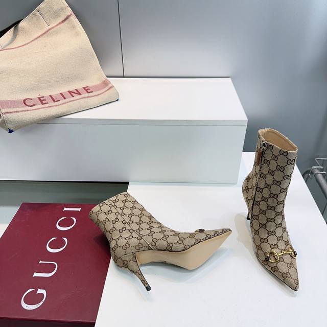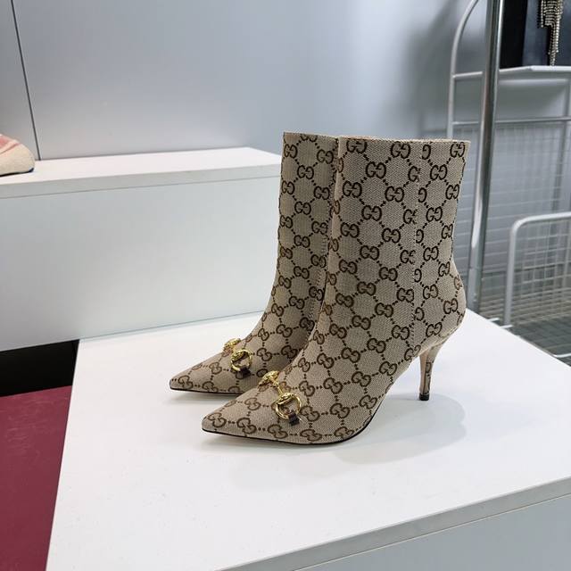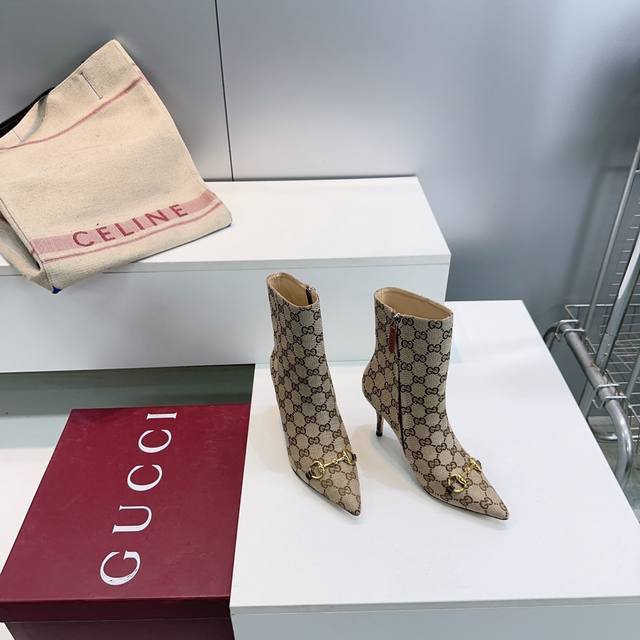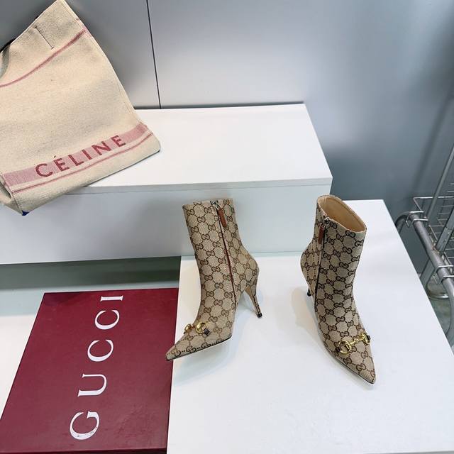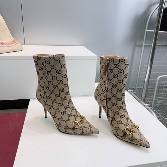 High-quality factory release! Top-quality Gucci 25Ss Fall/Winter new arrival classic monogram canvas horsebit hardware stiletto pointed-toe ankle boots! DDD Reimagines winter ankle style with iconic aesthetics. DDD Light gold horsebit embellishes the boot upper DDD Replicating the brand's 70-year classic symbol DDD Every metallic texture hides the secrets of luxurious craftsmanship. DDD Elastic fabric fits the ankle precisely to eliminate any feeling of restriction DDD Naturally stretches with every step DDD The perfectly designed chunky heel DDD Balances stability and figure-flattering DDD Chunky heels are a friendly choice for high heel beginners. DDD Paired with the delicate texture of a leather sole DDD Easily connects retro and modern styles, from work trousers to weekend knit dresses DDD DDD Made with imported calfskin patent leather monogram fabric. The inner lining and toe box are made of sheepskin. Italian imported genuine leather outsole. Heel height: approximately 8.5cm. Sizes: 35-42. Sizes 40, 41, and 42 are non-refundable and non-exchangeable. Comes with original packaging.