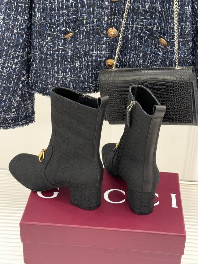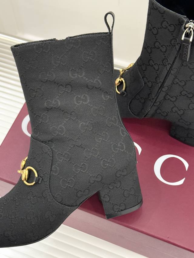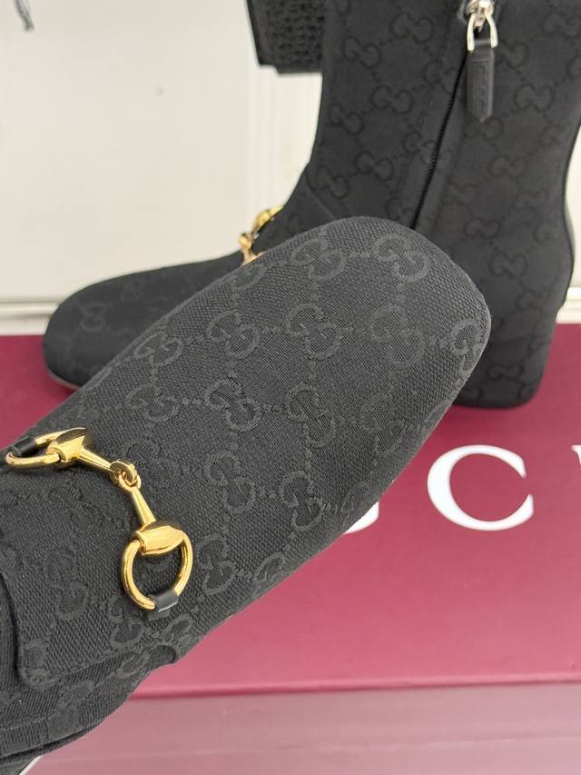 Leather/Fabric Gucci 25Wf New Horsebit Round Toe Chunky Heel Ankle Boots This ankle boot features the iconic horsebit design throughout. The antique silver plating adds a touch of timeless elegance, making it the most recognizable luxury symbol of the shoe. The round toe design gently accommodates the feet, while the chunky heel height precisely balances elegance and practicality. Delicate stitching outlines a retro silhouette, and the clean lines of the boot shaft fit snugly around the ankle. It can complement the sharp look of a suit or the romantic feel of a dress. The collision of classic aesthetics and modern practicality makes the retro horsebit no longer confined to nostalgia, but a perfect finishing touch to everyday wear. Whether commuting or enjoying a weekend stroll, it captures moments of glamour with a modern flair. DDD uses original custom materials for the upper. The inner lining and toe box are made of sheepskin. It features an Italian imported genuine leather outsole. Sizes: 35-39, 40, 41, 42 (custom sizes available).
