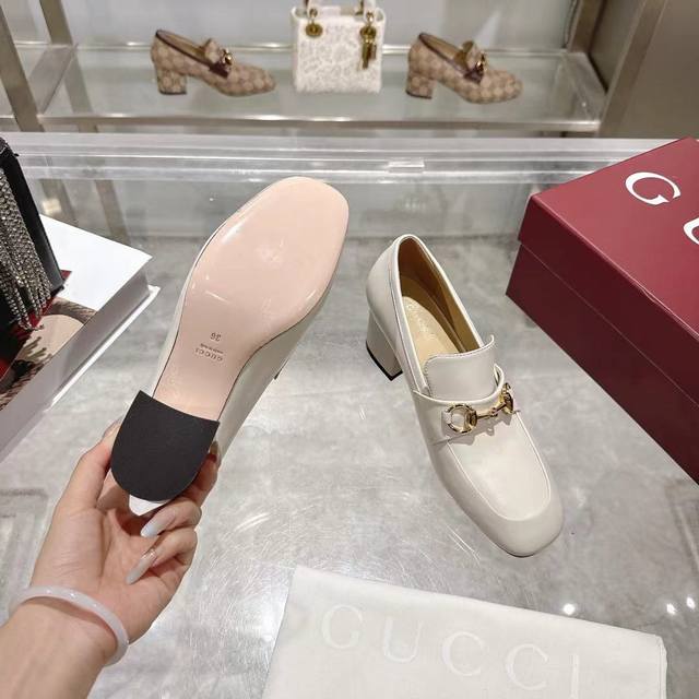 Long-term stock available. Gucci low-cut loafers with a clever use of round toe and other design elements for a stylish look. Materials: Imported soft cow patent leather and imported sheepskin. Lining: Imported sheepskin insole. Heel height: 5.5cm. Sizes: 35, 42. Notes: 40, 41, 42. Custom made. Factory price.