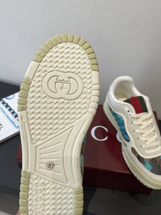 Men's 10 Gucci Couple Sneakers White Sneakers Ddd Re-Web is the first sneaker collection designed by the brand's creative director, Sabato De Sarno. It boldly interprets the classic Gucci stripes with a modern silhouette. This new sneaker is crafted from classic Gg canvas and white leather, making it highly recognizable. It features colorful signature details such as a red and green webbing tongue, creating a strong visual appeal. DDD Original imported cowhide leather Ddd Original imported terry cloth lining Ddd Original molded TPU outsole Ddd Sizes: 35-45 Women's 41 45 Custom orders are non-refundable DDD
