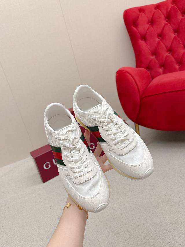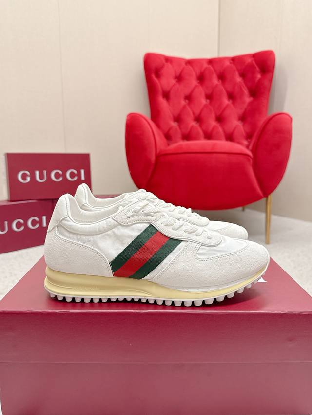 Gucci 2025 Spring/Summer Runway Sneakers, the Cortez sneakers are super popular. A highly featured item from the 2025 runway, recommended by many celebrities and influencers. The classic shoe design uses innovative stitching techniques to create a flowing, water-like texture. Super comfortable to wear. Leather trim, breathable logo fabric, and classic green and red webbing accents all showcase the brand's style. Detachable buckles, original mold combination sole. Size: Men's 39-44, Men's 45. Custom orders are non-refundable.