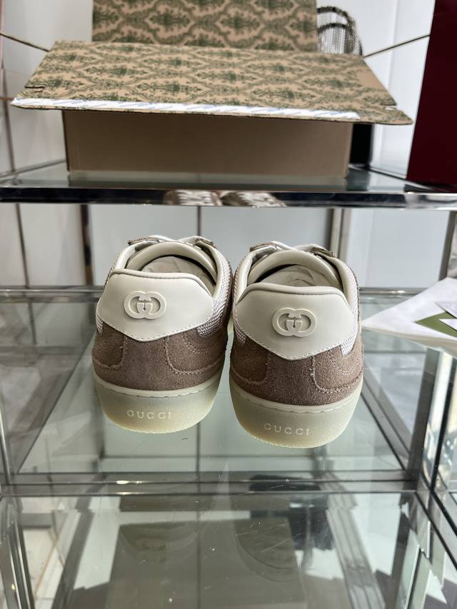 Men's Gucci 25Ss new color casual white sneakers are a hot-selling recommendation. They feature original TPU soles, original fabrics, and cowhide lining. The cowhide footbed is a one-to-one replica of the original last! The pursuit of ultimate comfort! Fabric: imported cow suede + mesh. Complete packaging, same as in the store. Sizes: 39-45. 45 is custom-made.