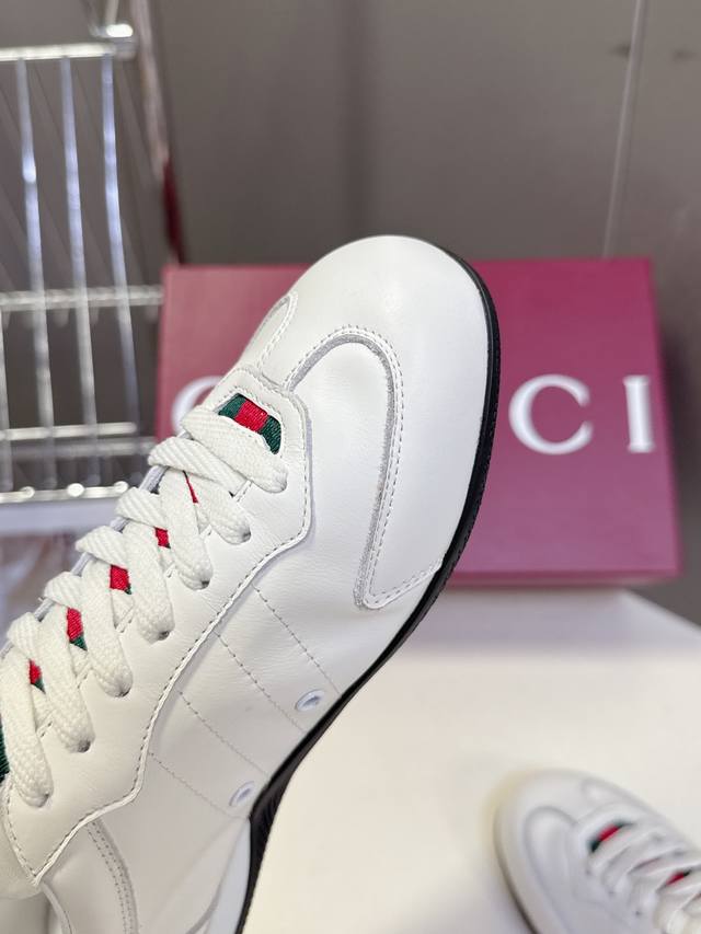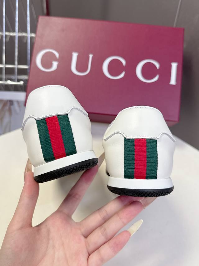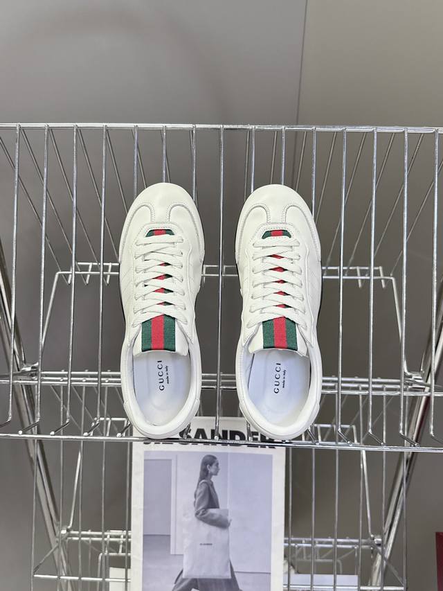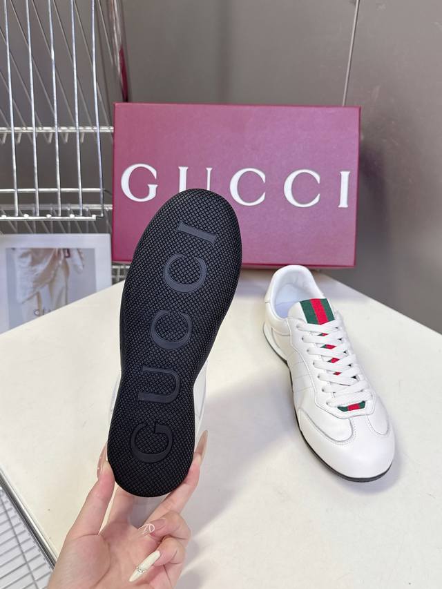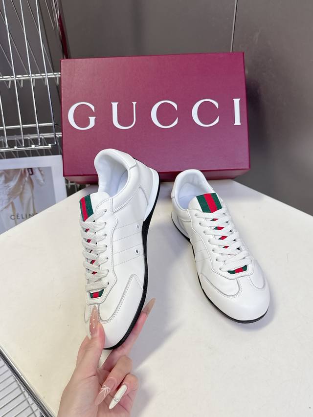 Many celebrities and influencers have been recommending the new Gucci Shift series, which features a lightweight design that reinterprets sporty style. The clean silhouette adds a touch of freedom, showcasing refined quality with every movement. Webbing details run like a continuous ribbon throughout the design, while side stitching details add a finishing touch. Upper: Washed cowhide, custom suede lining. Insole: Sheepskin. Outsole: Two-tone TPU outsole. Size: Women's 35-40, Men's 39-44