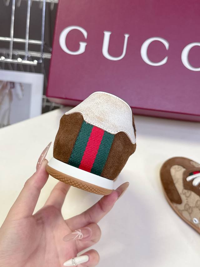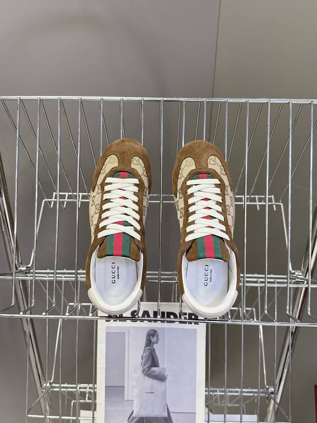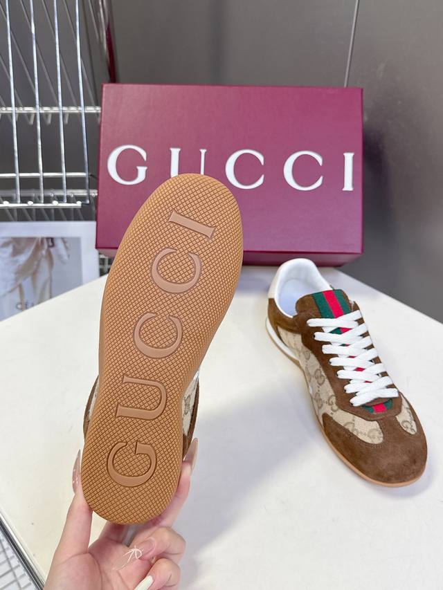 Many celebrities and influencers have been recommending the new Gucci Shift series, which features a lightweight design that reinterprets sporty style. The clean silhouette adds a touch of freedom, showcasing refined quality with every movement. Webbing details flow like a continuous ribbon throughout the design, while side stitching details add a finishing touch. Upper: Washed cowhide, custom suede lining. Insole: Sheepskin. Outsole: Two-tone TPU outsole. Size: Women's 35-40, Men's 39-44