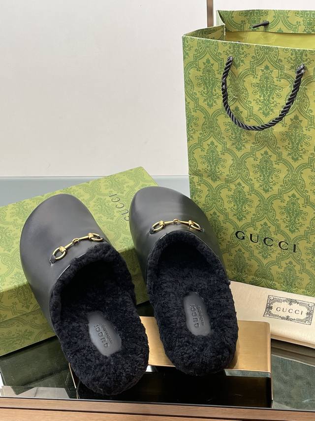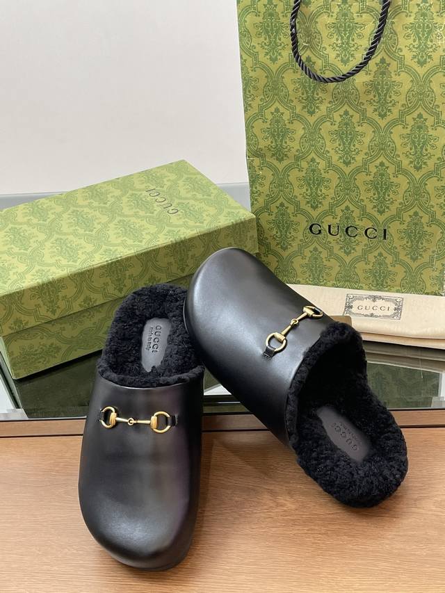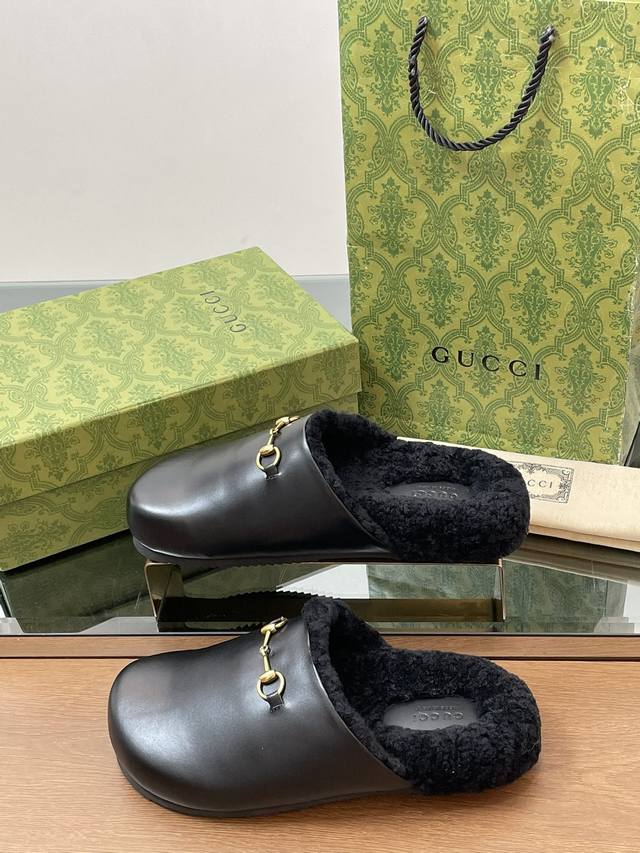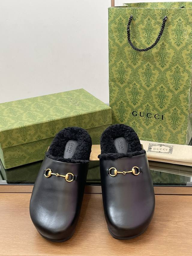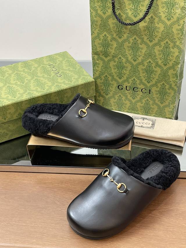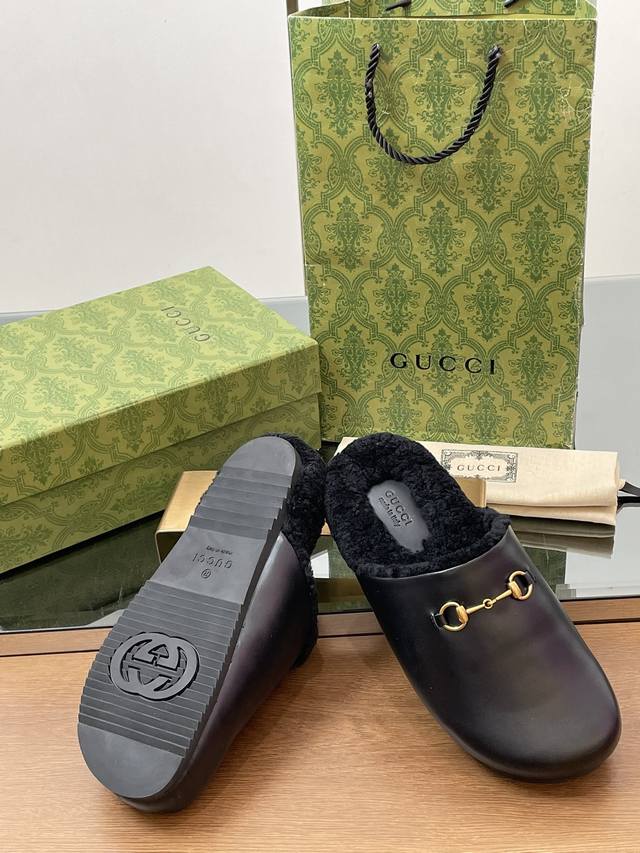 New arrival: Thick-soled Gucci Horsebit-style wool mules and merino wool slippers for men and women, synced with the official website. A one-to-one replica of the original, the highest-quality version features all materials and details identical to Yb, and is produced year-round.