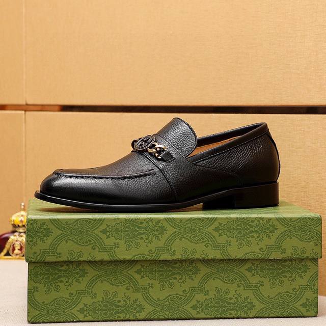 Product Trademark: Gucci Casual Leather Shoes DDD True Sizes: 38-44, 45, 46, 47 (Custom Made) DDD Product Materials: Selected imported top-grain lychee-textured cowhide upper + original hardware buckles, imported cowhide lining. Strong three-dimensional visual effect, original combination outsole DDD Colors: 2 colors available DDD