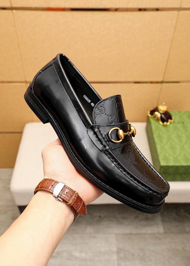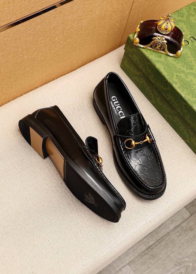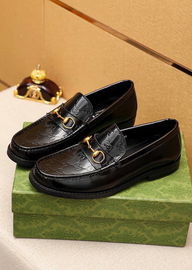 Product Trademark: Gucci Casual Leather Shoes True to Size: 38-44, 45 (Custom Made) Materials: Selected top-grain split cowhide upper + original hardware buckles, imported cowhide lining. Strong three-dimensional visual effect, original combination outsole. Colors: 2 leather options available.