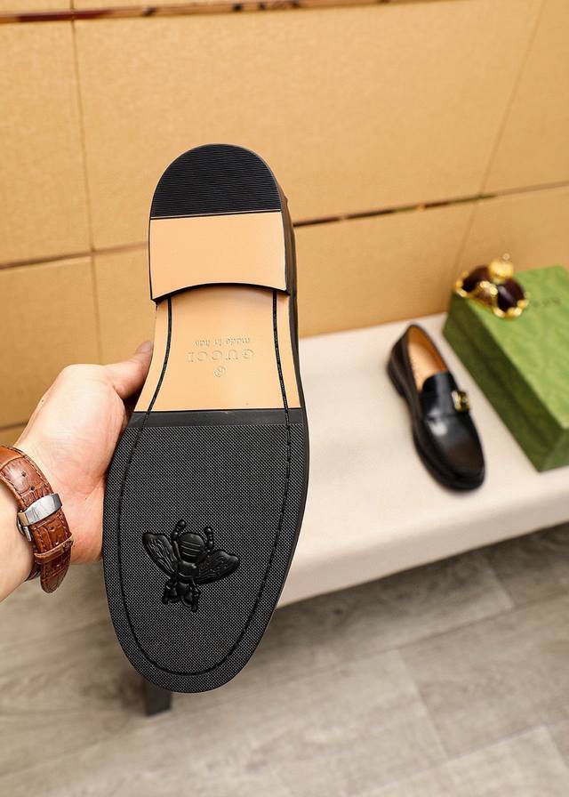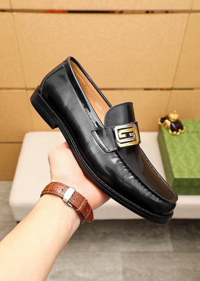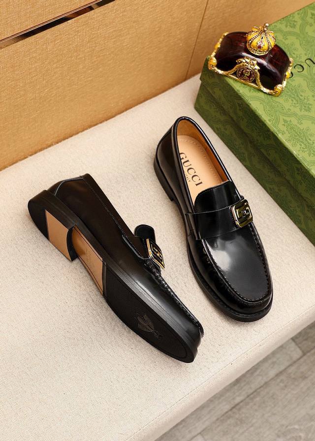 Product Trademark: Gucci Casual Leather Shoes True to Size: 38-44, 45 (Custom Made) Materials: Selected top-grain split-edge cowhide upper + original hardware buckles, imported cowhide lining. Strong three-dimensional visual effect, original combination outsole. Colors: 1 color available.