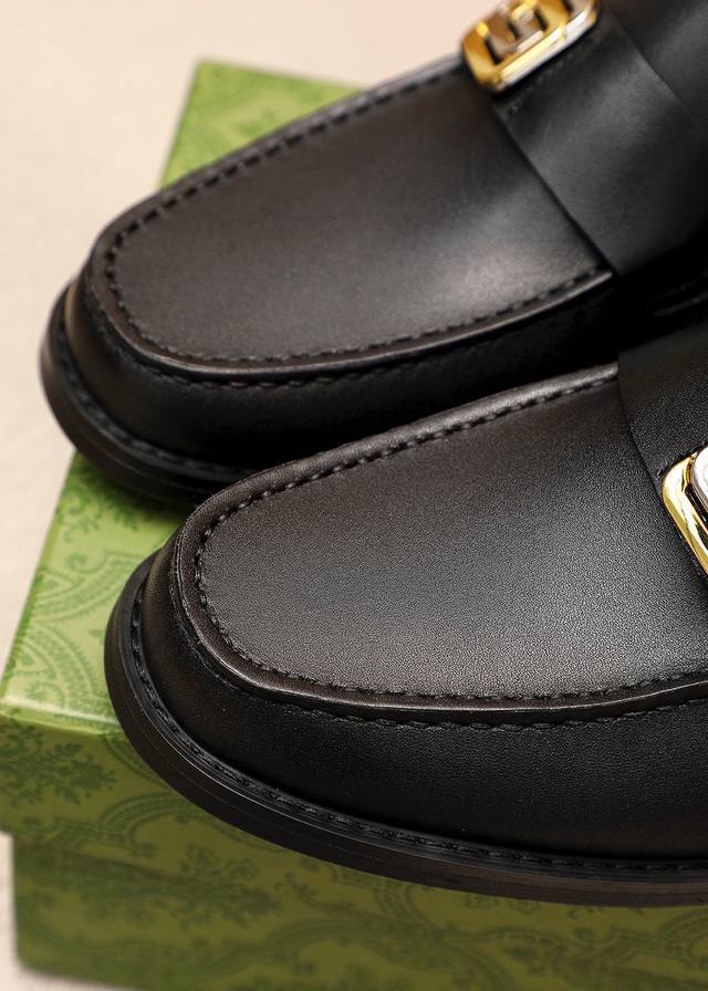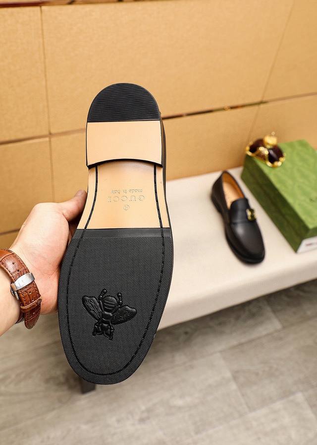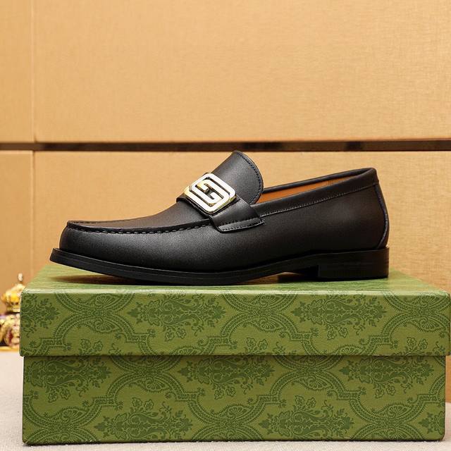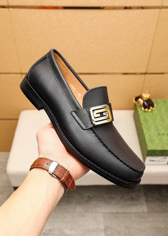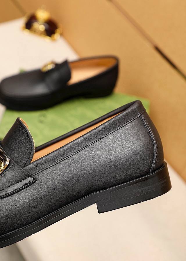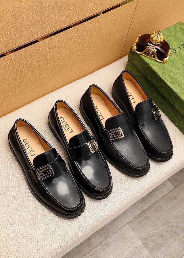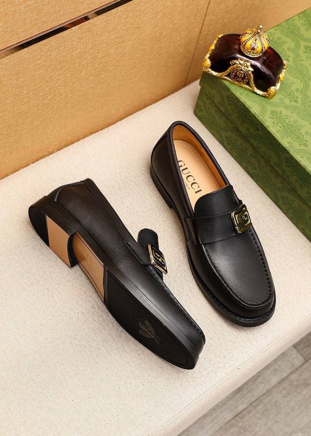 Product Trademark: Gucci Casual Leather Shoes True to Size: 38-44, 45 (Custom Made) Materials: Selected imported top-grain calfskin upper + original hardware buckles, imported cowhide lining. Strong three-dimensional visual effect, original combination outsole. Colors: 1 color available.