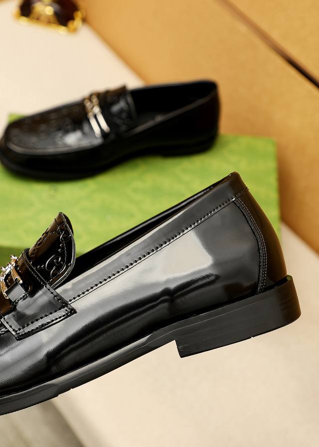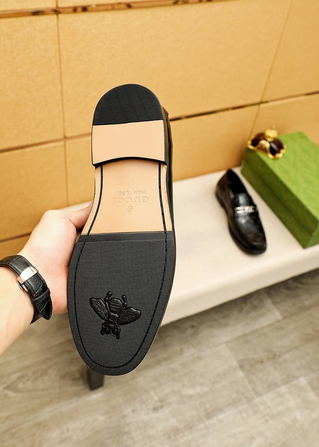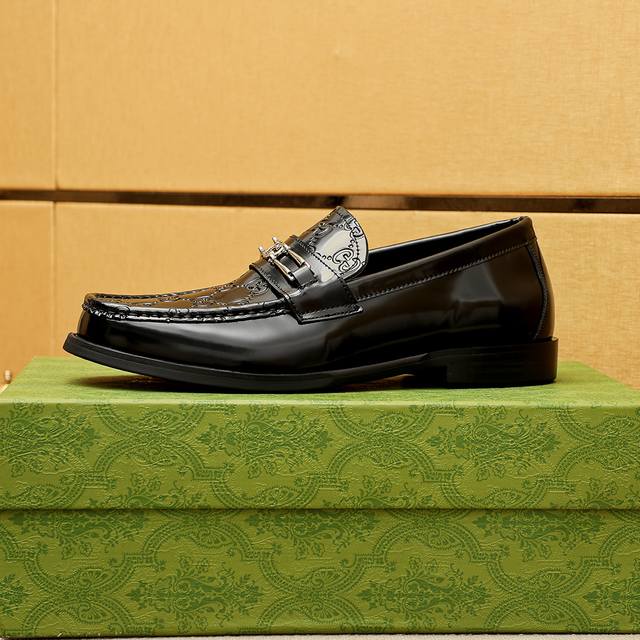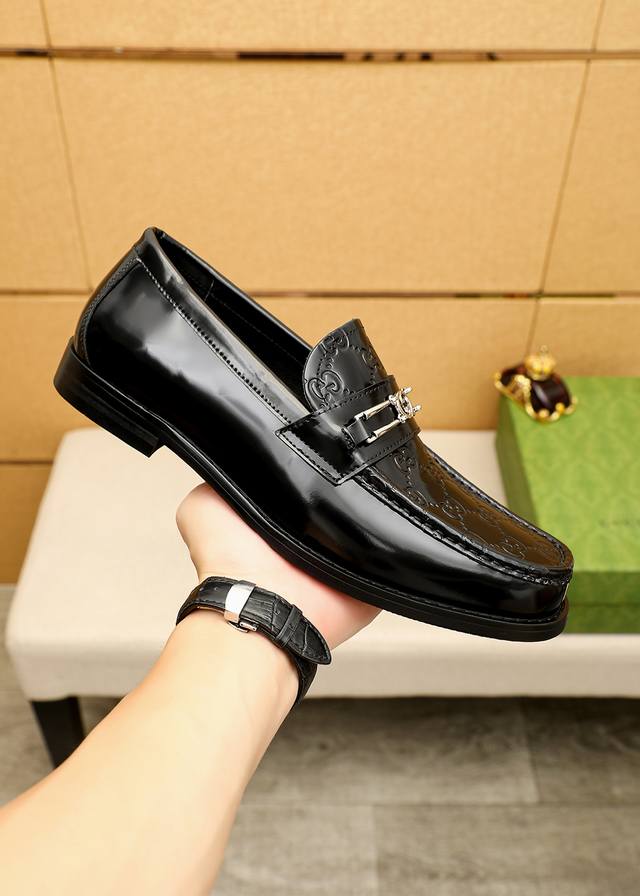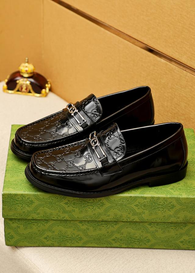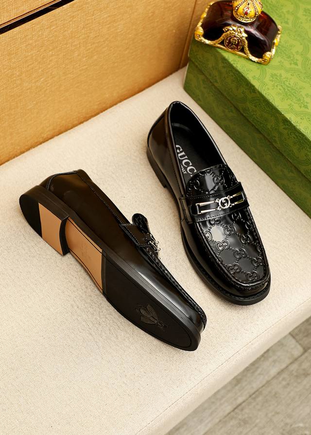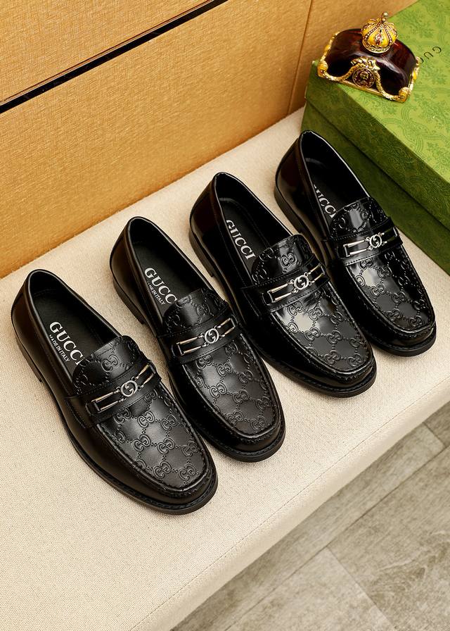 Product Trademark: Gucci Casual Leather Shoes True to Size: 38-44, 45-46 (Custom Made) Materials: Selected top-grain split-edge embossed cowhide upper + luxurious hardware buckles, imported water-dyed cowhide lining. Strong three-dimensional visual effect, original outsole. Colors: 2 colors available.