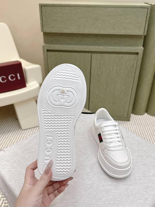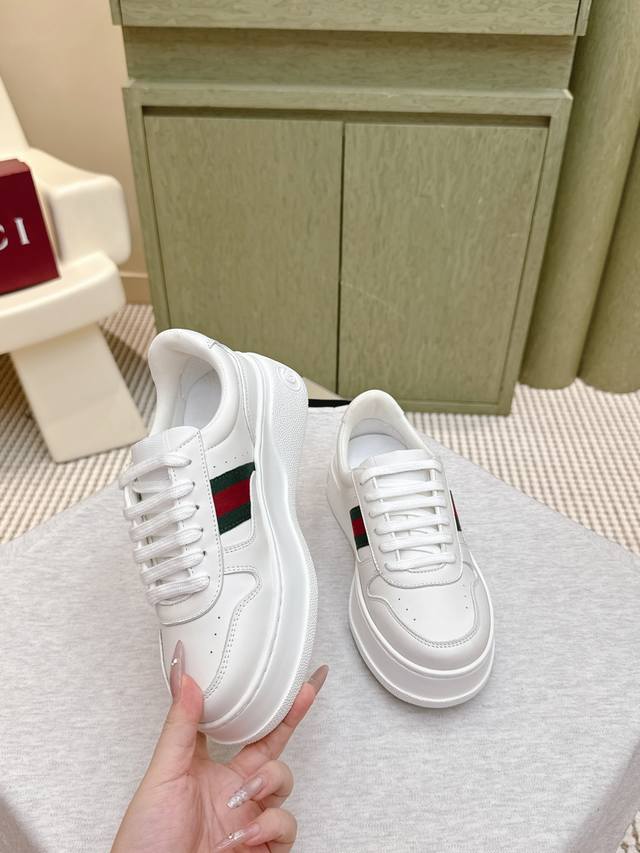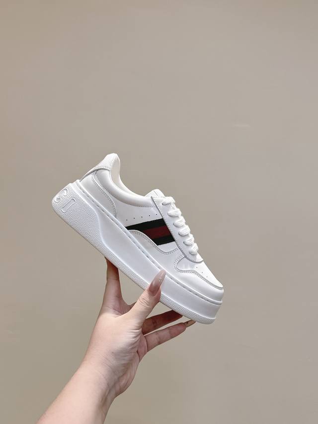 original sole with large Gucci logo, there is also a Gg logo on the heel, 5cm height increase thick sole, classic Gucci ribbon