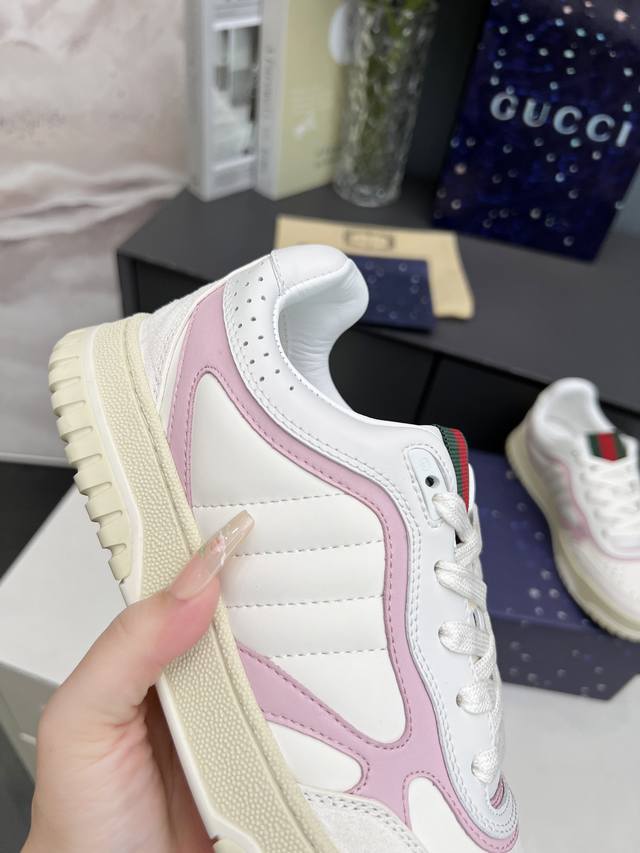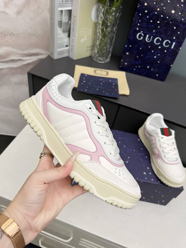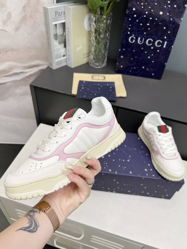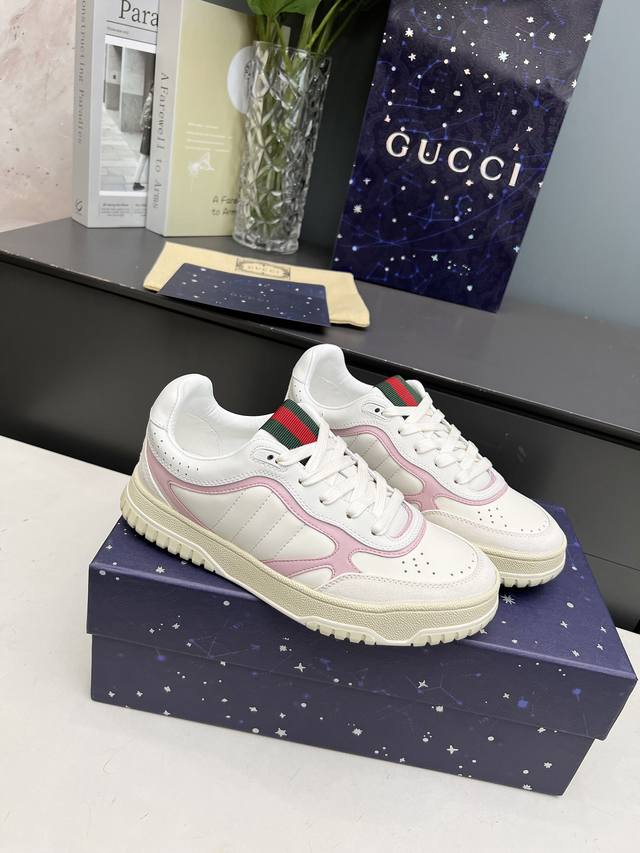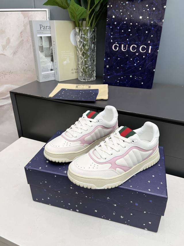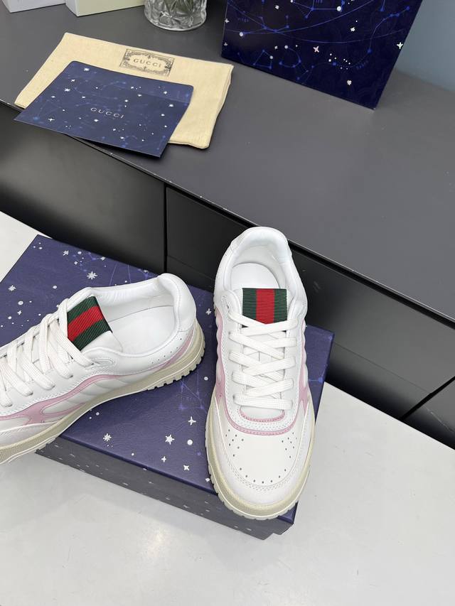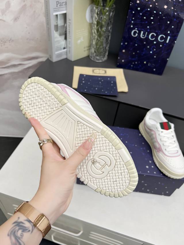 . This is a premium Gucci low-top casual sneaker! A one-to-one replica with oiled edges. A new style for early spring, creating a perfect street style that's both cool and stylish. A classic silhouette with a retro and futuristic feel, showcasing exquisite textures! Custom molded, high-density outsole. Complete packaging.