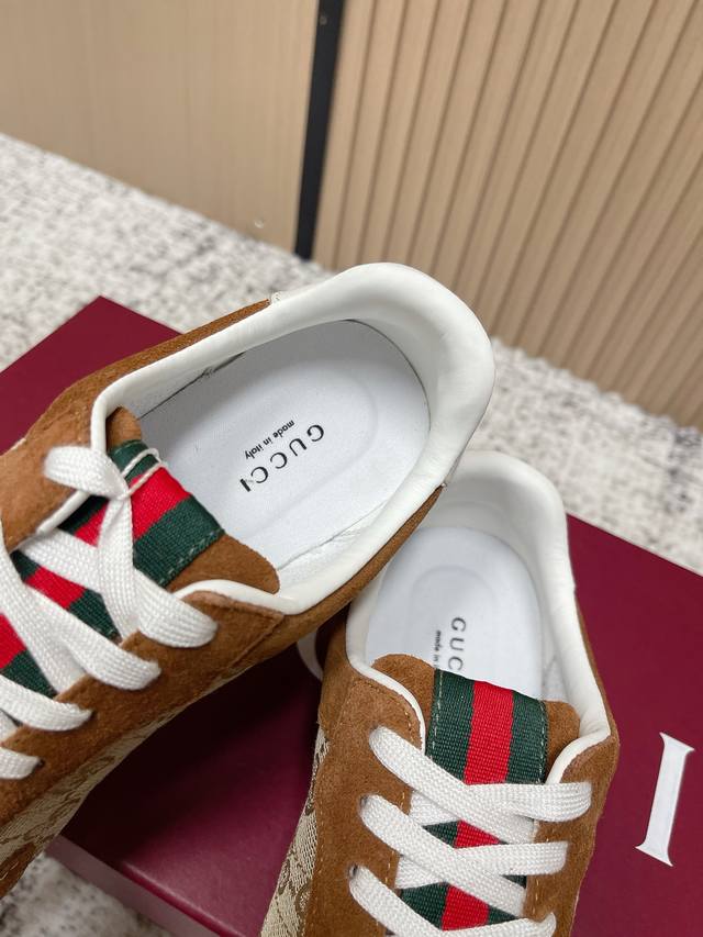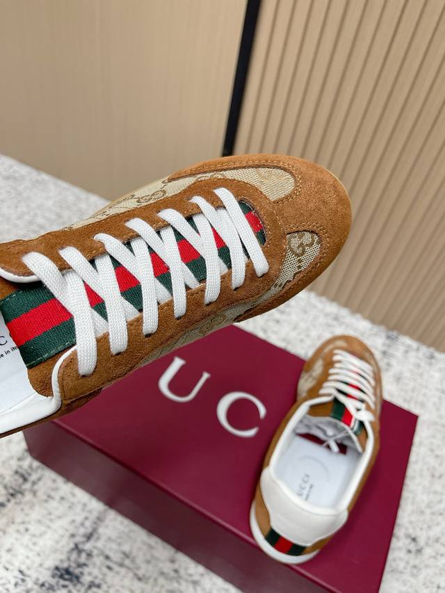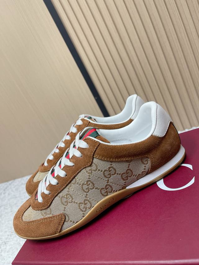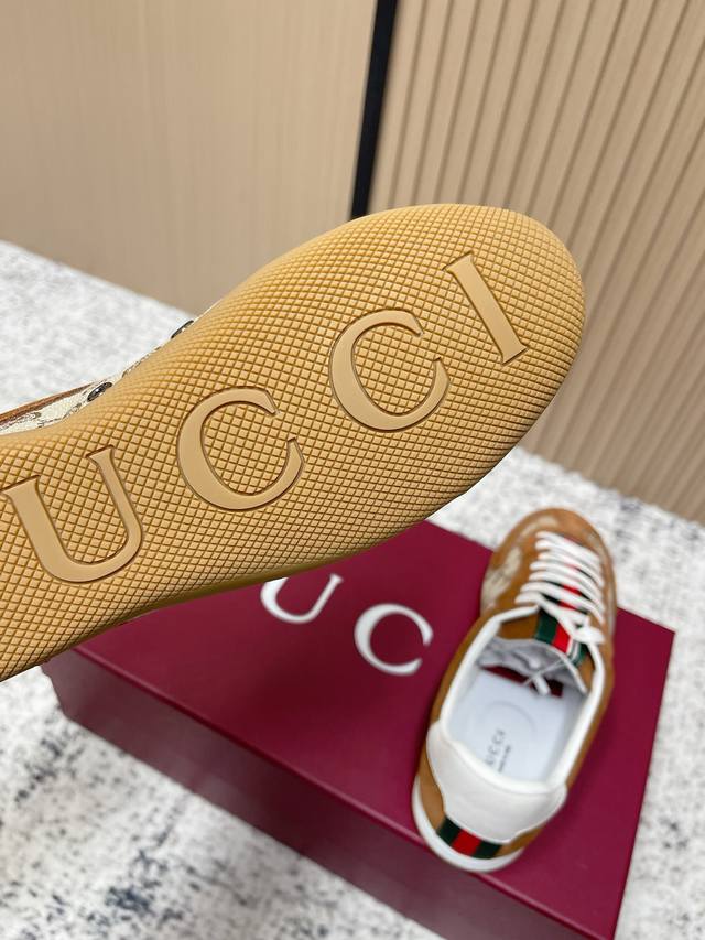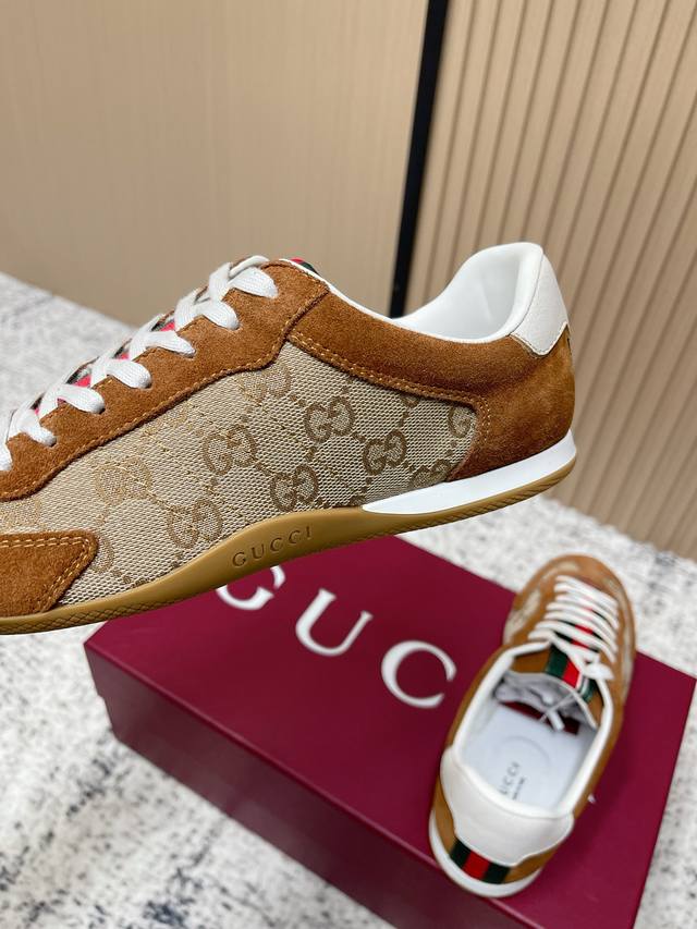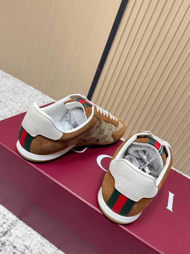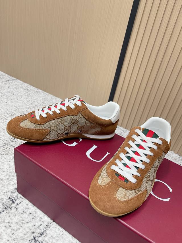 Top Quality: Couple Style DDD 2025 Early Autumn New Gucci Shift Series Couple Sneakers Lace-up Casual German Training Shoes DDD The Gucci Shift series is newly launched, with a lightweight design that reinterprets sporty style. The clean silhouette adds to the natural feel, showcasing exquisite texture with every movement. The webbing details are like a continuous ribbon running through the entire design, and the side stitching details add a finishing touch. DDD Upper: Washed cowhide, custom suede DDD Insole: Sheepskin DDD Outsole: Open mold two-tone TPU outsole DDD Sizes: 35-45 Women's 40.41 Men's 45. Custom made DDD