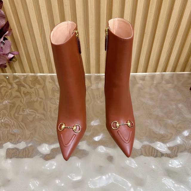 Top-tier Gucci 2025 Early Autumn New Horsebit Ankle Boots (Cloth/Leather). Classic chunky heel, square toe, original quality. Every detail is meticulously crafted, comparable to genuine Gucci boots
