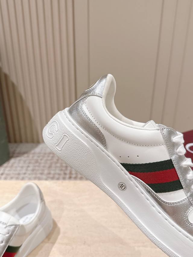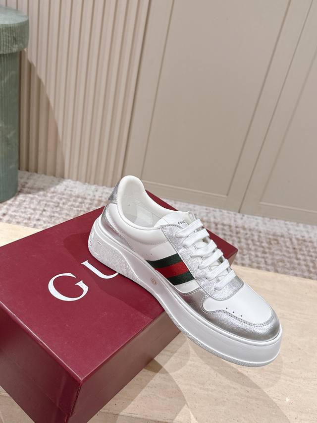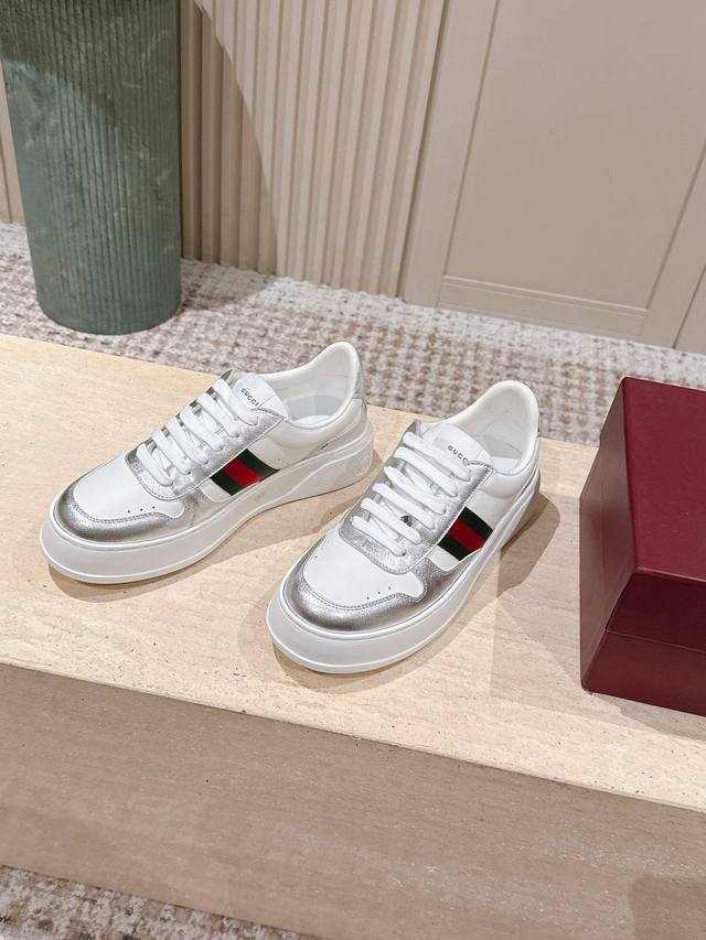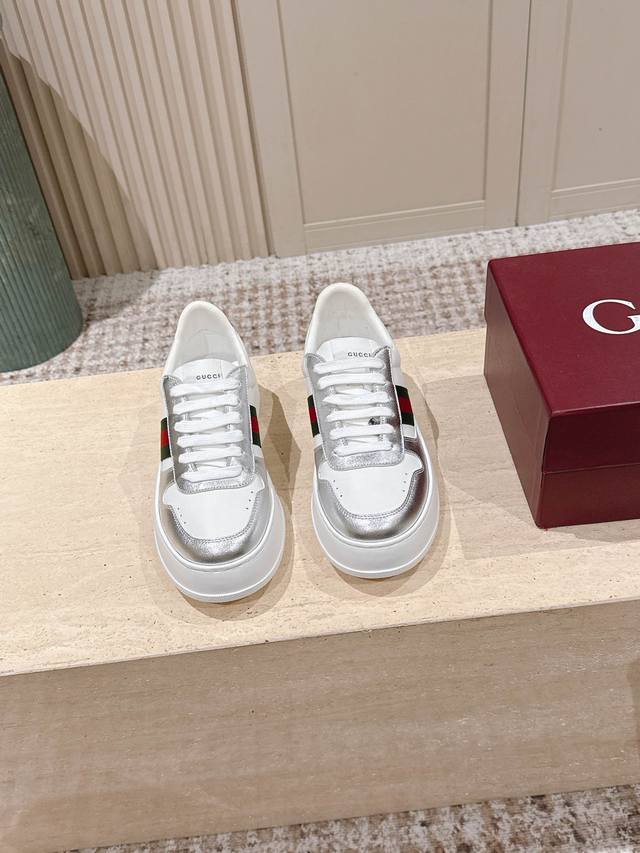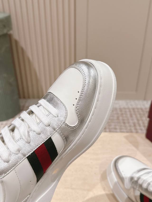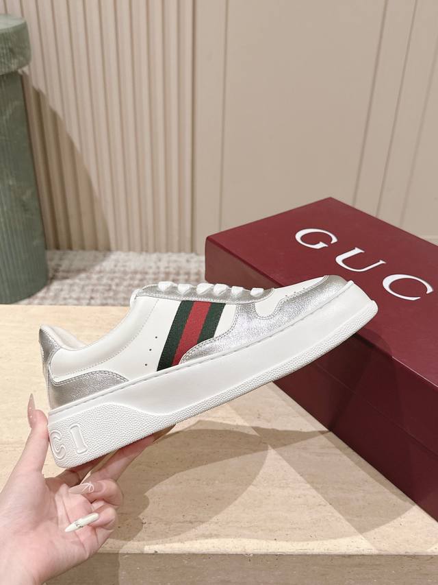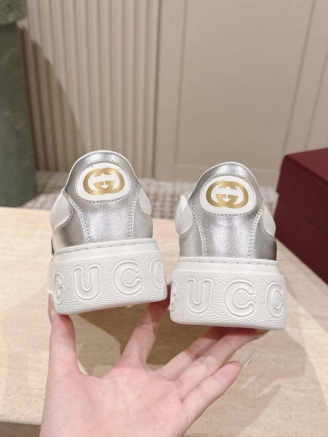 Top-tier version: Couple style: Gucci new color white sneakers, incredibly stylish and comfortable, very versatile and super lightweight, with a strong retro feel, everyone loves them with the platform sole~ Material: Original custom imported cowhide with perforated technology. Lining: Water-dyed sheepskin lining, exclusively molded TPU outsole. Sizes: 35-45 DDD