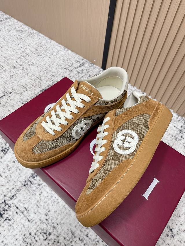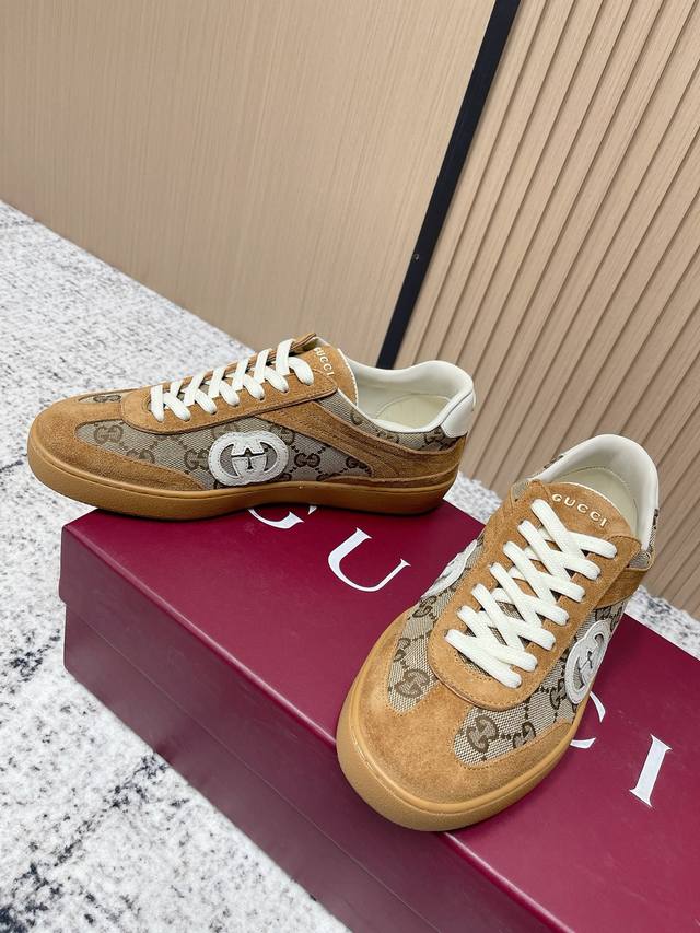 Top-tier version: Gucci latest double G couple casual sports shoes, German train