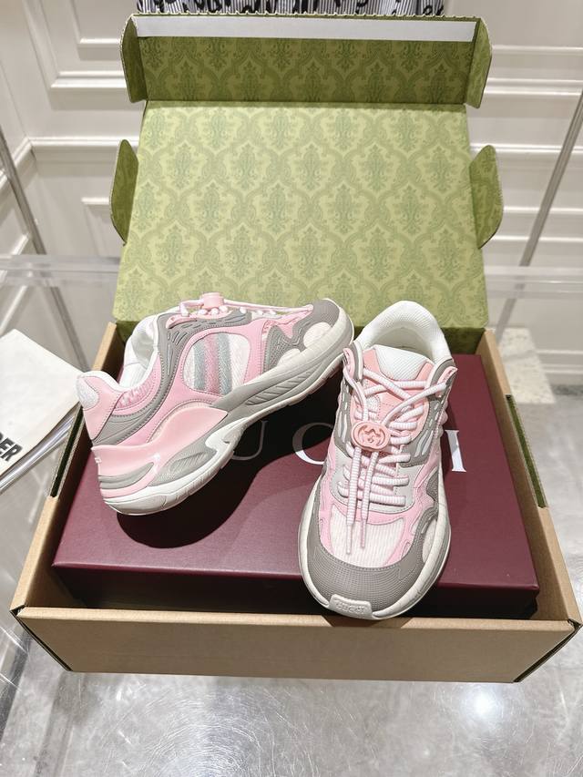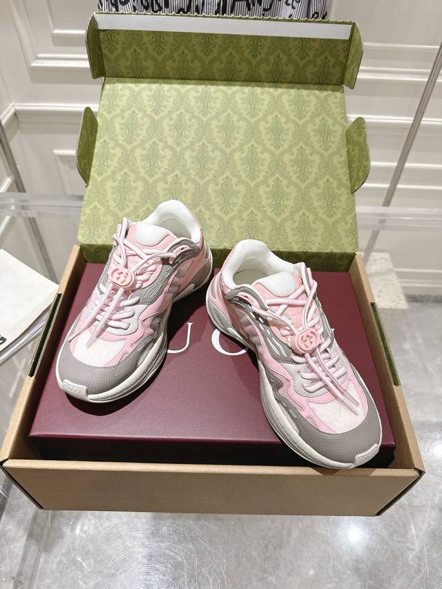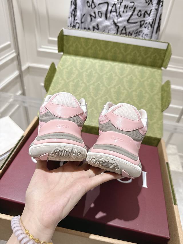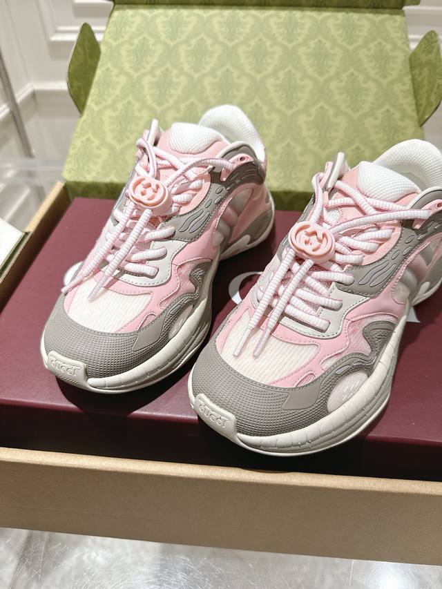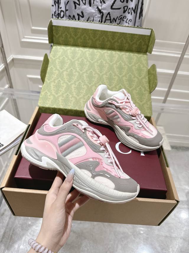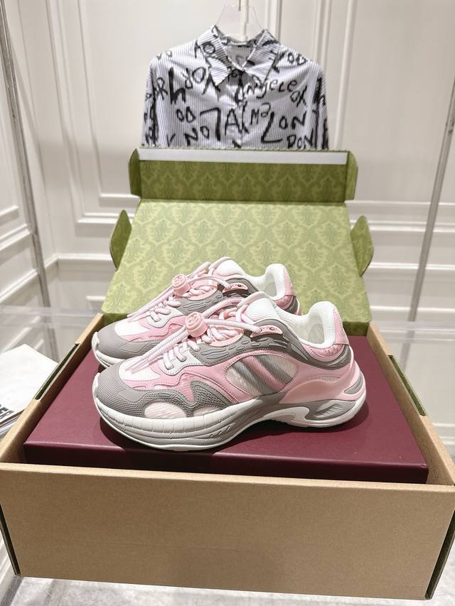 This Gucci 2.0 reinterprets the brand's iconic striped ribbon elements. This reinterpretation of iconic details features a thick EVA sole and a flexible silhouette for a stable and comfortable wearing experience