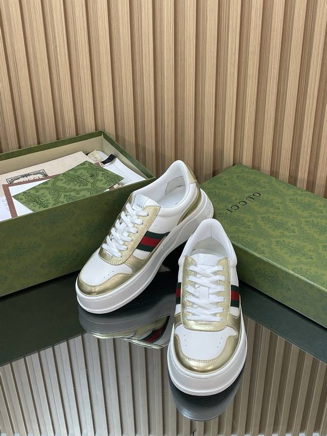 Women's 2025 Autumn/Winter New Gucci Platform Biscuit Shoes Men's + 50 Green Red Green Webbing Casual Shoes Couple Sports Shoes Couple Original Custom 1:1 Replica Highest Version Comparable to Gucci