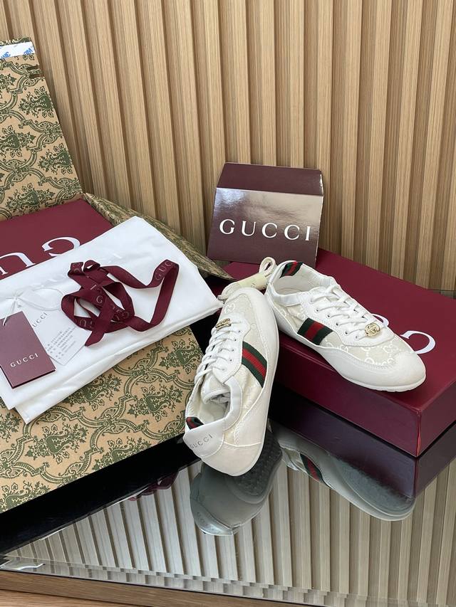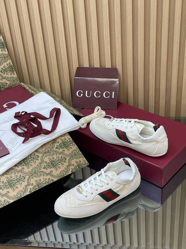 Women's 2670 Autumn/Winter Gucci Shift Series Elastic Heel Lightweight Women's Shoes Green Red Green Webbing German Training Shoes Ballet Shoes Fashion Casual Shoes Retro Versatile Travel Shoes Top-Tier Proxy Purchase Level DDD The new Gucci Shift series is now available, with a lightweight design that reinterprets sporty style. This sneaker features a smooth silhouette with a striped webbing elastic heel design, showcasing exquisite dynamism. The detachable heel allows for easy creation of versatile everyday looks. DDD Material: Imported original custom high-end cow suede deerskin monogram G fabric DDD Lining: Comfortable and soft sheepskin lining DDD Outsole: Original molded anti-slip and wear-resistant TPU sole DDD Packaging: Latest burgundy boutique airline airplane case with complete packaging box. DDD Sizes: Women's 35-41 Women's 4041 Custom orders are non-refundable and non-exchangeable DDD