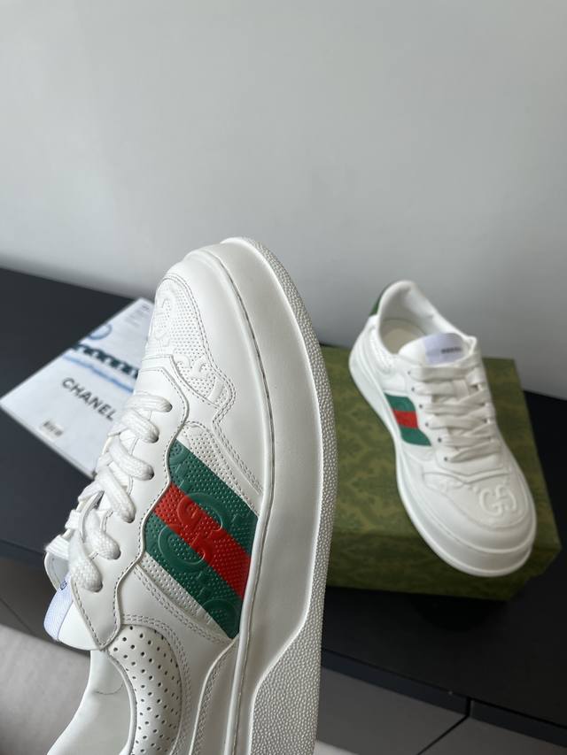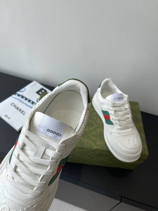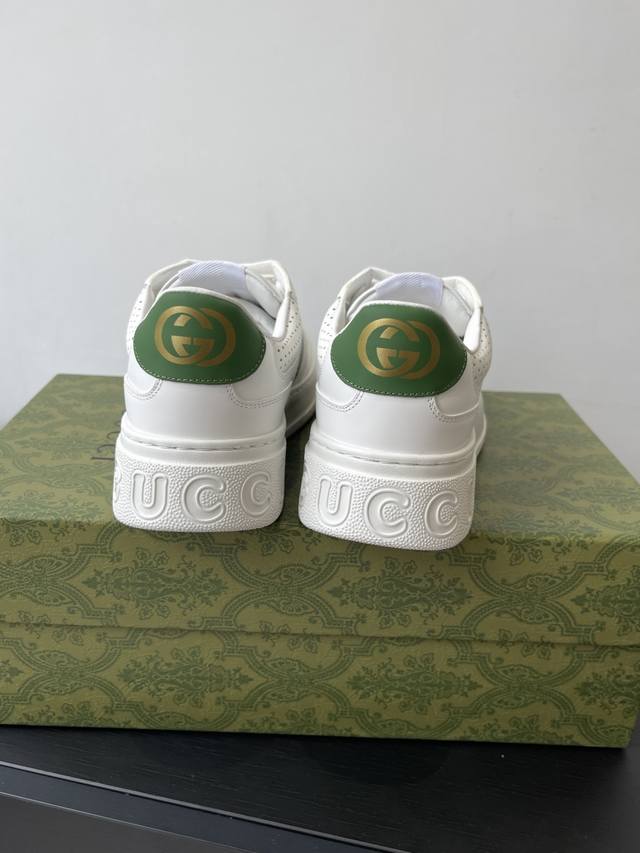 Women's and Men's 420 Gucci new white shoes are incredibly stylish and comfortable. These versatile, lightweight, and retro-inspired shoes feature a thick sole for height enhancement and leg lengthening. Made from custom-made imported cowhide with perforated finish. Lining is water-dyed sheepskin, and the TPU outsole is available. Sizes: 35-45. Women's 40, Men's 45. Custom-made
