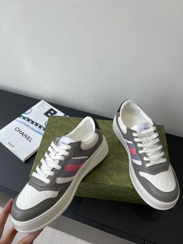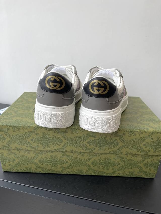 Women's and Men's 420 Gucci new white shoes are incredibly stylish and comfortable. These versatile, lightweight, and retro-inspired shoes feature a thick sole for height enhancement and leg lengthening. Made from custom-made imported cowhide with perforated finish. Lining is water-dyed sheepskin, and the TPU outsole is available. Sizes: 35-45. Women's 40, Men's 45. Custom-made