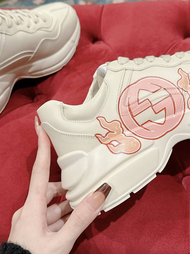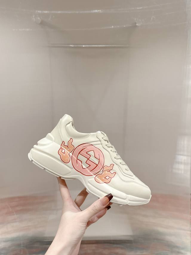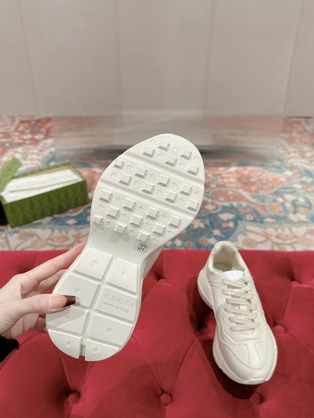 Women's Gucci chunky sneakers, Italian style, top-quality replica. Purchased from Taikoo Hui, this original has undergone continuous improvements and upgrades, from packaging and anti-counterfeiting labels to shoe box accessories, material optimization, outsole craftsmanship, stitching, and edge finishing. Outsole: Original mold. Upper: Original A-grade imported cowhide. Lining: Original A-grade mixed sheepskin. Insole: Original A-grade mixed sheepskin. Mid-sole with logo + original injection-molded insole + original last process. Original full set of customized packaging, anti-counterfeiting chip + cloth bag + Gucci card envelope + credit card receipt + electronic invoice + shoelaces. High-quality replica with details identical to the original; please compare carefully. Sizes: Women's 35-40. Women's 40 is custom-made and non-refundable.