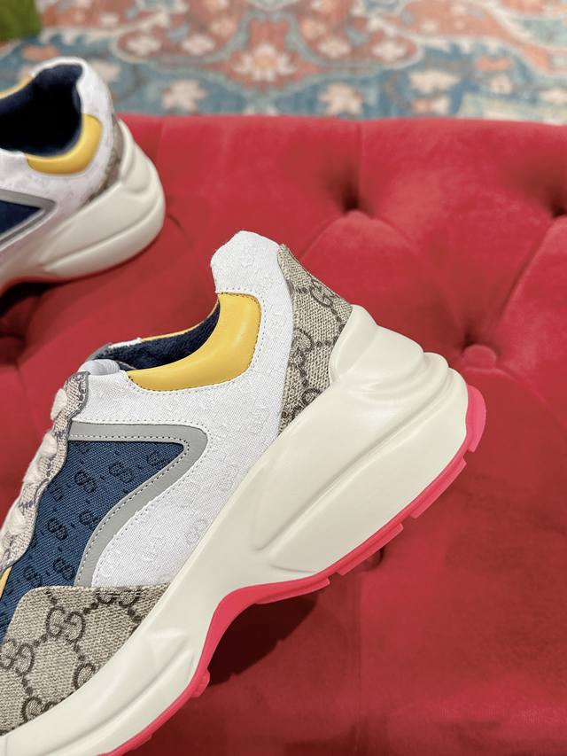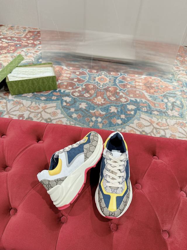 Women's Gucci chunky sneakers, Italian style, top-quality replica. Purchased from Taikoo Hui, this original has undergone continuous improvements and upgrades, from packaging and anti-counterfeiting labels to shoe box accessories, material optimization, outsole craftsmanship, stitching, and edge finishing. Outsole: Original mold. Upper: Original A-grade imported cowhide. Lining: Original A-grade mixed sheepskin. Insole: Original A-grade mixed sheepskin. Mid-sole with logo + original injection-molded insole + original last process. Original full set of customized packaging, anti-counterfeiting chip + cloth bag + Gucci card envelope + credit card receipt + electronic invoice + shoelaces. High-quality replica with details identical to the original; please compare carefully. Sizes: Women's 35-40. Size 40 is custom-made and non-refundable.