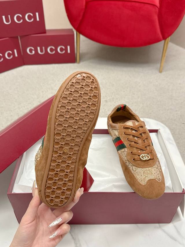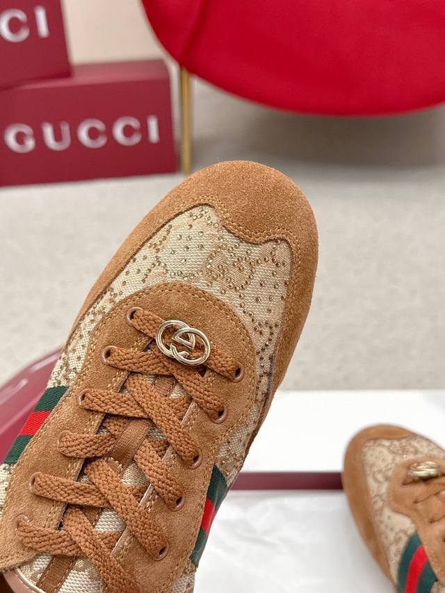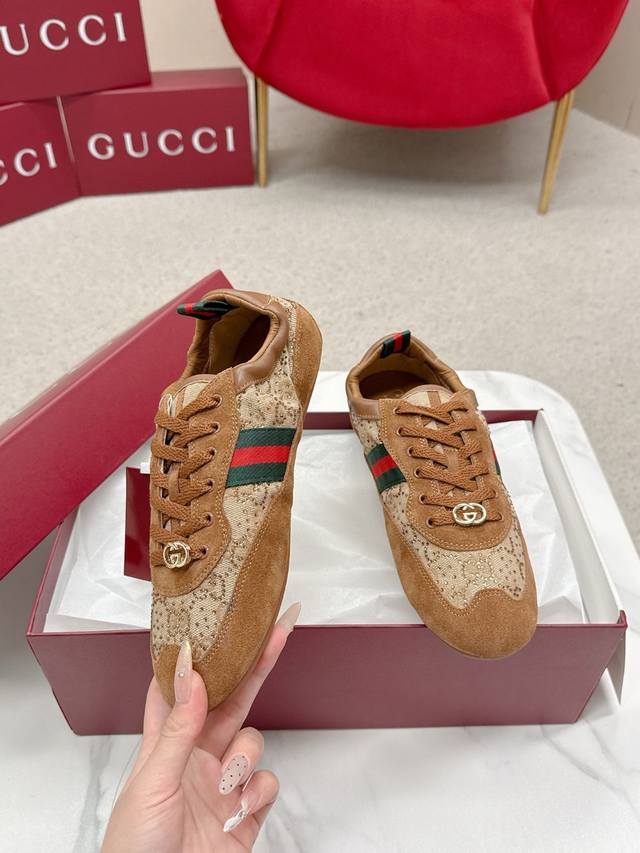 Women's Gucci latest mesh color-blocked casual shoes, Gg series casual loafers, runway style, Zp developed pure original version, metal double G crystal cylindrical logo, Gucci original texture webbing upper, distressed cowhide, breathable mesh fabric. Material: Original custom cowhide suede breathable mesh color-blocking process. Lining: Original custom sheepskin. Insole: Original sheepskin injection molding. Outsole: Original molded sole. Packaging: Original full packaging. Sizes: 35-39, 40 (custom orders are non- refundable ).