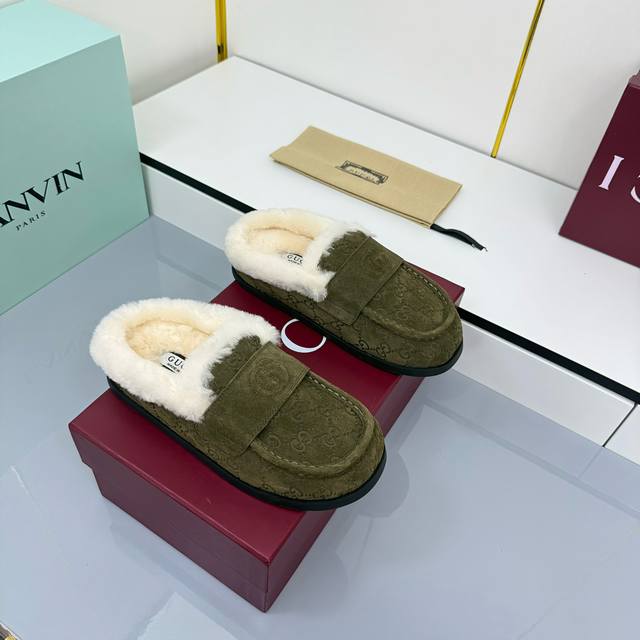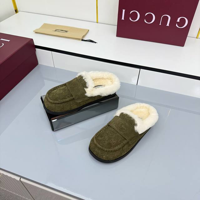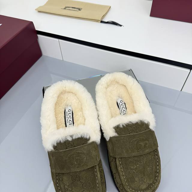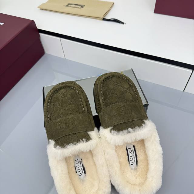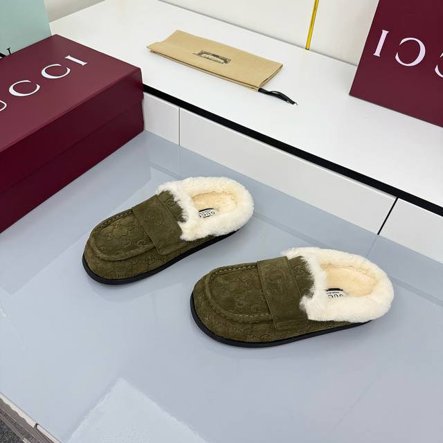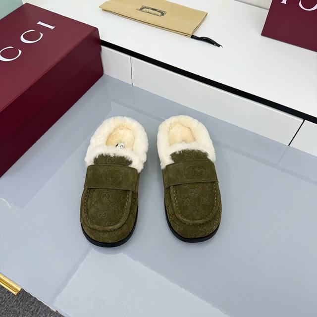 2025 Early Autumn Latest Colorway Gucci Fleece Slippers, Newest Flat Half-Wool Slippers DDD As an outstanding representative of design heritage, these shoes vividly showcase classic elegance. Featuring embossed leather with the brand's iconic GG logo, these shoes achieve timeless classic style. The soft material and refined, flowing silhouette exude everyday elegance! Comfortable for outings. DDD Sizes: 35-39. 4041 Custom-made, non-refundable DDD Buy Now DDD