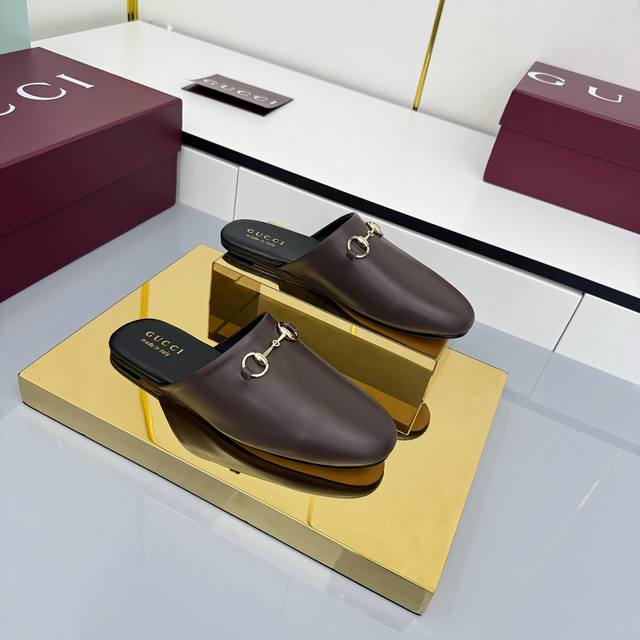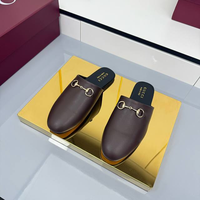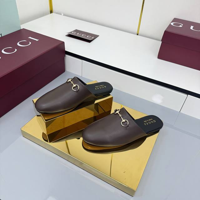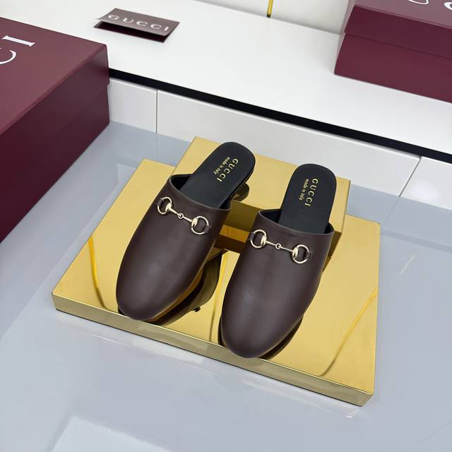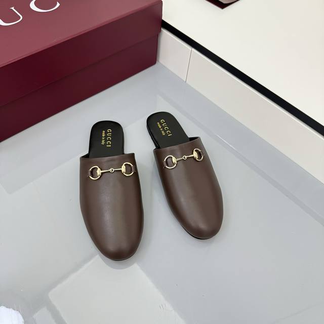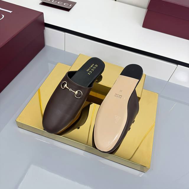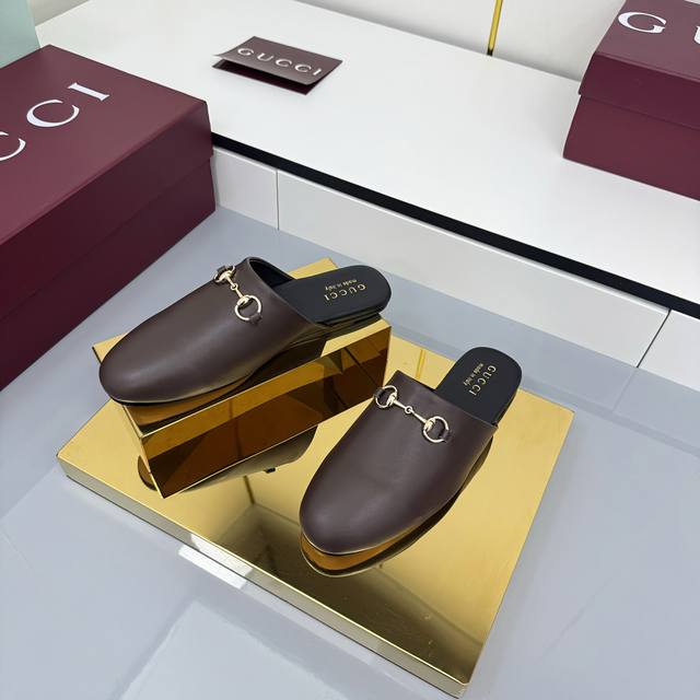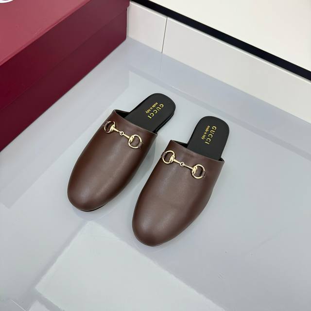 2025 Fall/Winter Collection: Classic motifs continue to shine in Gucci's new collection. The new collection features meticulously crafted horsebit hardware, showcasing the brand's equestrian heritage. This women's mule is crafted from smooth suede and accented with light gold hardware for striking details. [DDD Leather Material DDD Light Gold Hardware DDD Horsebit DDD Leather Sole DDD Flat DDD Sizes 35-42 DDD]
