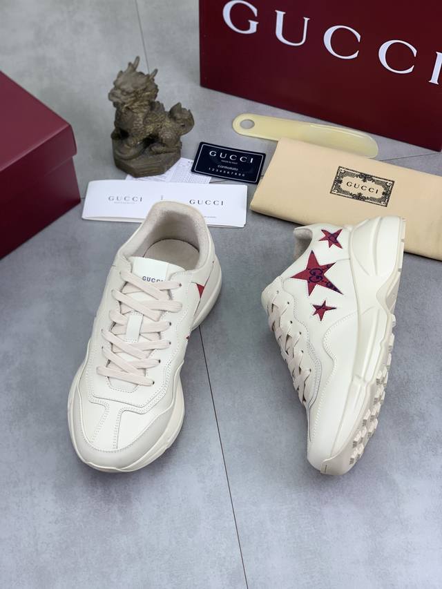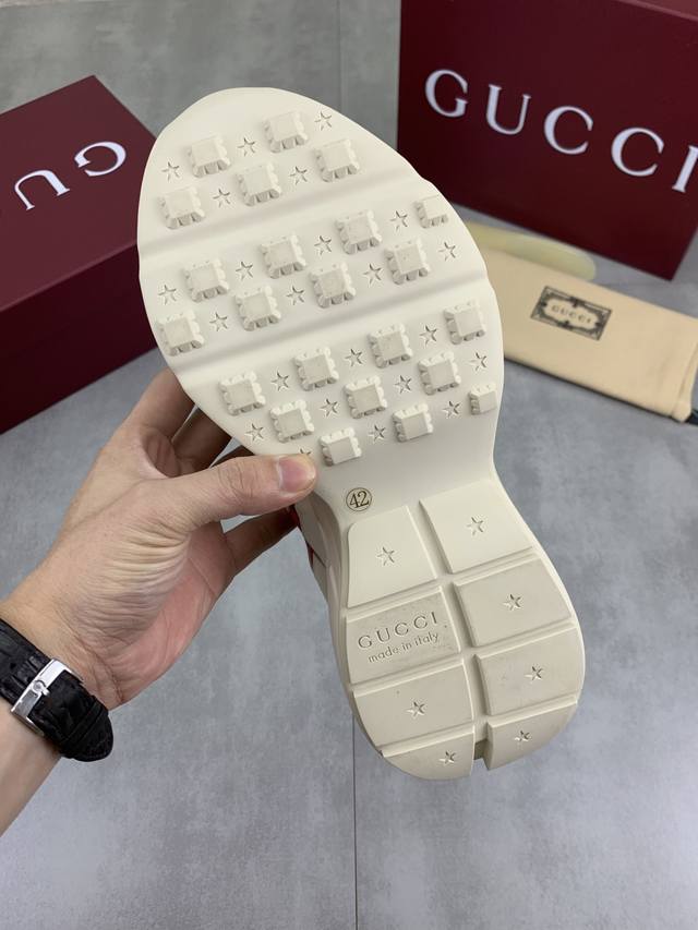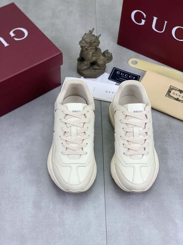 Factory direct price, genuine Gucci couple style high-quality Gucci chunky sneakers. Same as retail stores, imported cowhide upper, comfortable sheepskin lining, excellent feel, original lightweight shock-absorbing thickened foam outsole, simple color blocking, versatile and stylish. Sizes: Women's 35-40, Men's 38-45, 46. Custom orders are non-refundable and non-exchangeable.