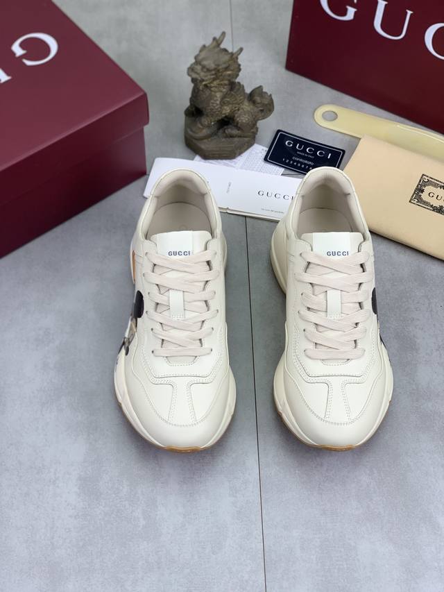 Factory direct price, genuine Gucci couple style high-quality replica Gucci chunky sneakers. Same as retail stores, imported cowhide upper, comfortable sheepskin lining, excellent feel, original lightweight shock-absorbing thickened foam outsole, simple color blocking, versatile and stylish. Sizes: Women's 35-40, Men's 38-45, 46. Custom orders are non-refundable.