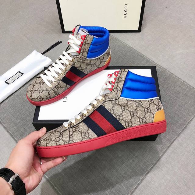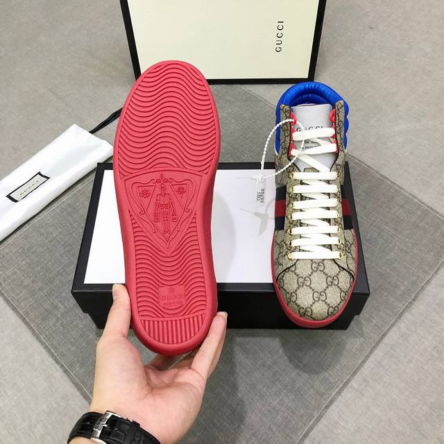 Factory direct price Gucci high-top casual shoes, released simultaneously with boutiques. Upper made of imported original materials, imported water-dyed calfskin, top-quality craftsmanship, brand logo on the outsole. Feels amazing on foot. Definitely a low-end version. Sizes: 38-44. Item number 0133 DDD