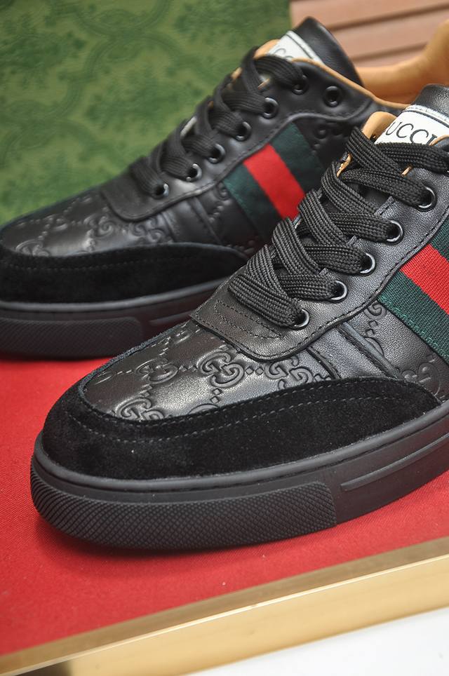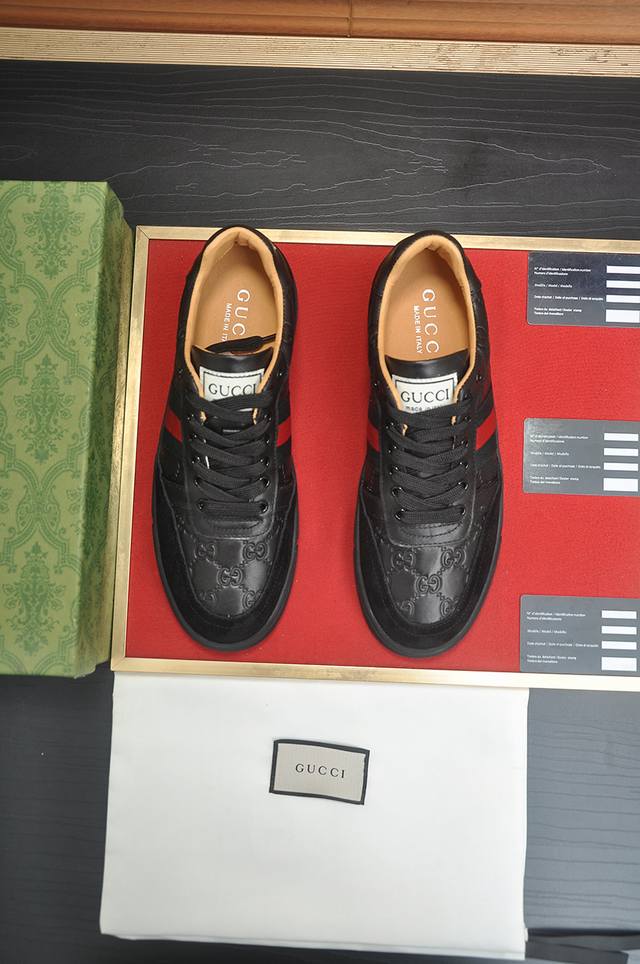 Factory direct price. Gucci men's athletic shoes, 1:1 replica from the official website, are now available! Made with original silk cowhide leather and top-grain sheepskin lining, plus a 1:1 comfortable outsole. Stylish and versatile, super comfortable and breathable! Available in black and white. Standard sizes 38, 45, and 45. Custom orders are non-refundable.