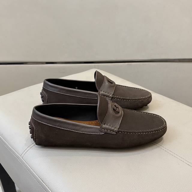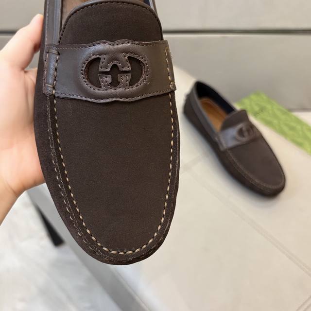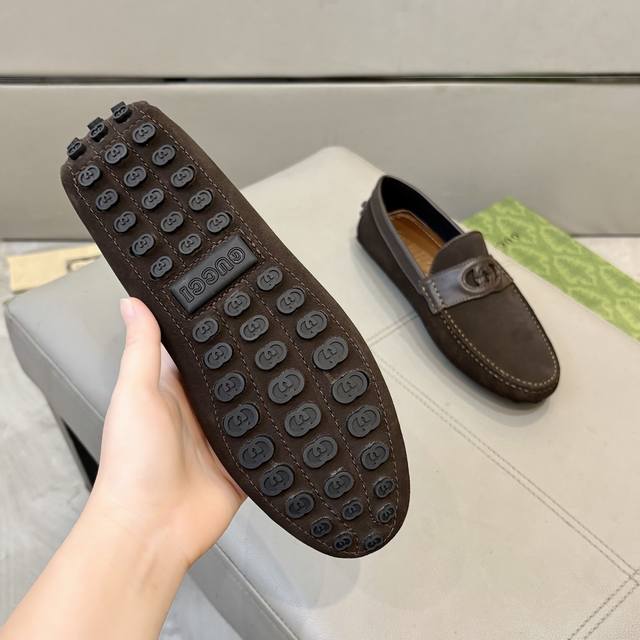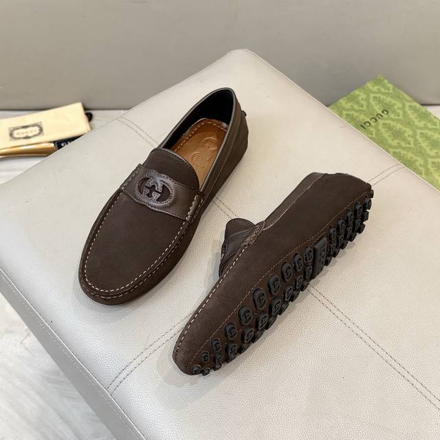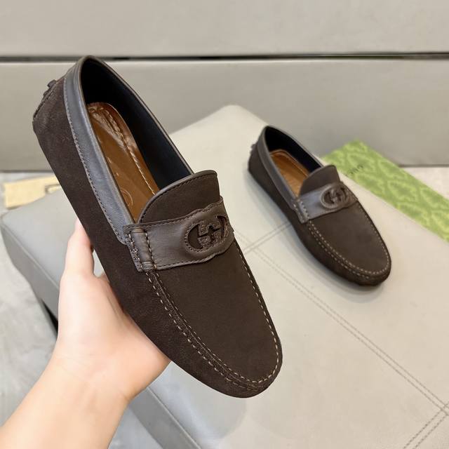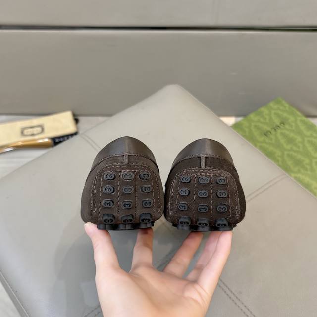 Factory direct price Gucci men's loafers 2025, official website synchronized, high-end quality, top-quality version, imported top-grain suede, black cowhide lining, insole, water-dyed brown cowhide lining. Black imported suede, sizes 38-45.