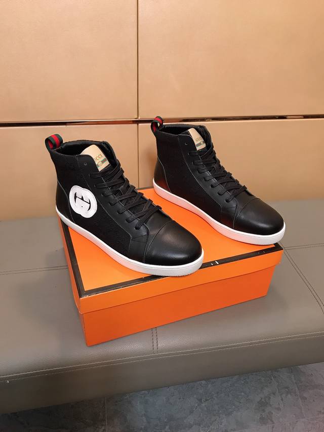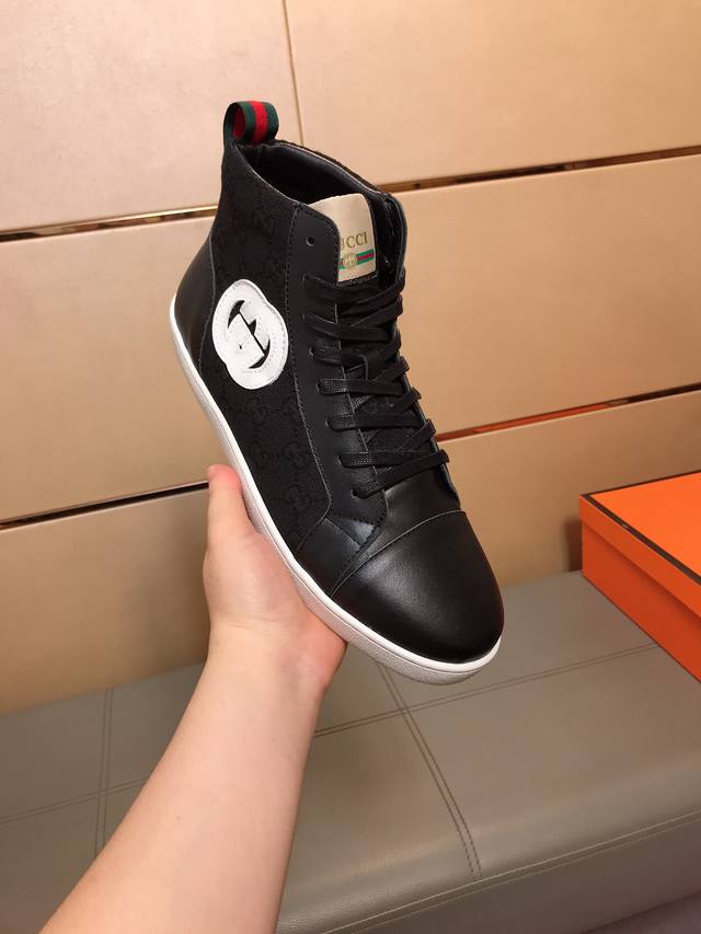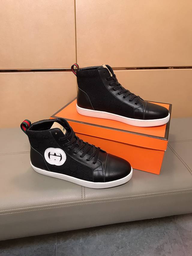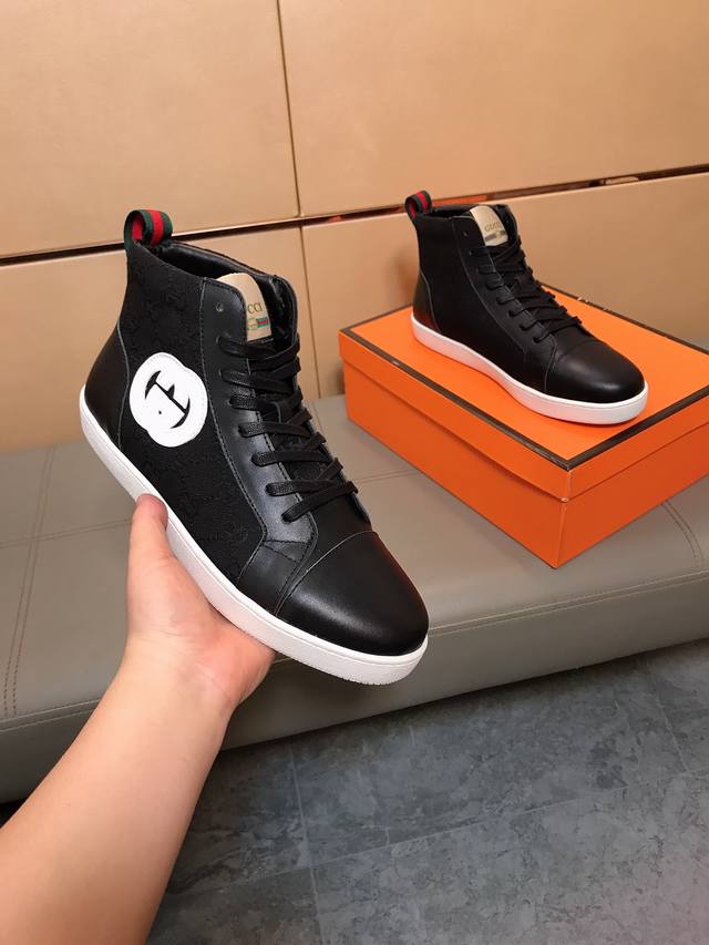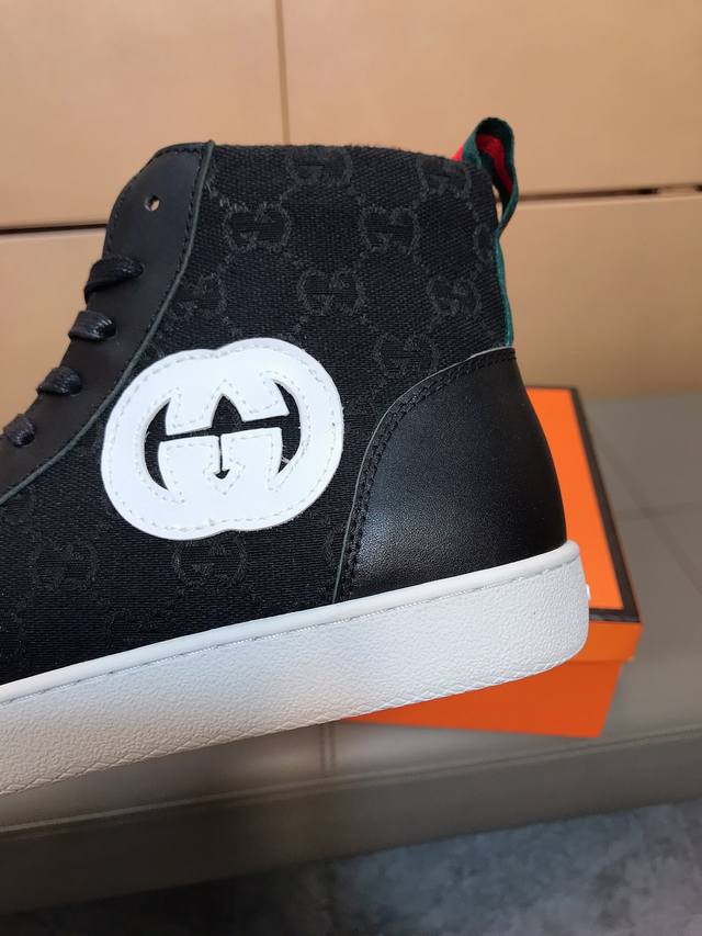 Factory direct price Gucci - New men's high-top casual shoes, exquisite workmanship, high-end luxury upper made of imported Italian cowhide + special printed fabric, luxurious and comfortable genuine leather lining, wear-resistant and non-slip casual outsole, breathable and comfortable to wear, the first choice for high-class men. Sizes: 38-44 DDD