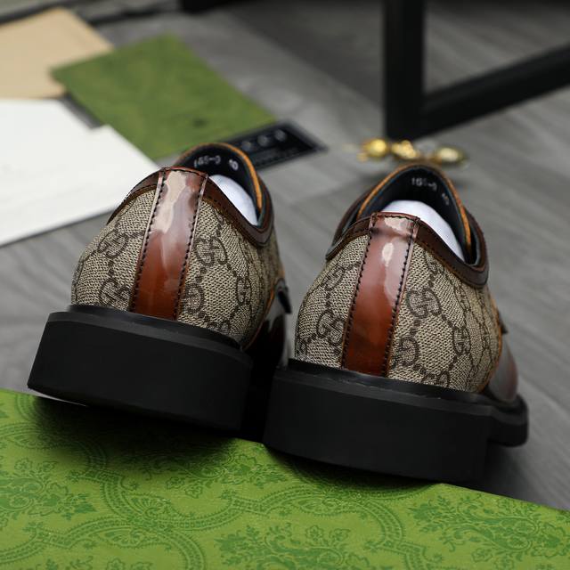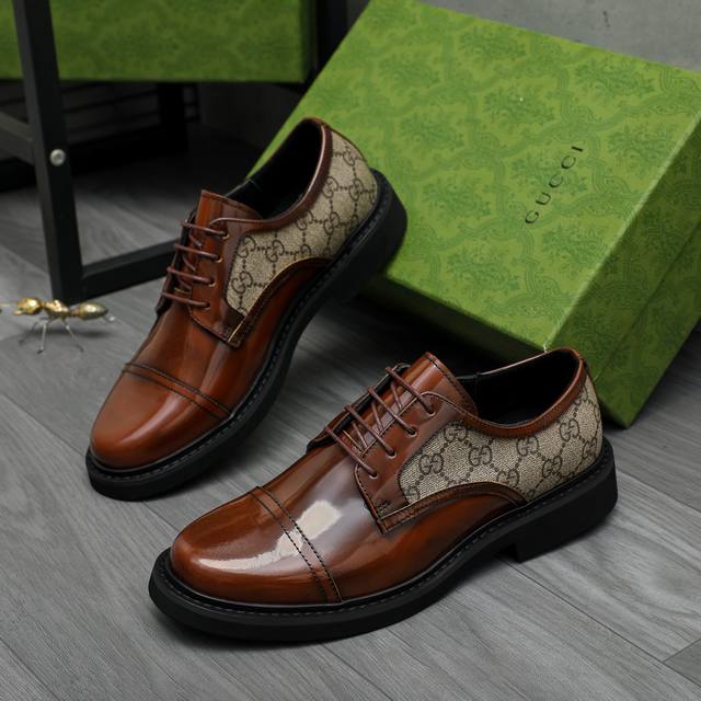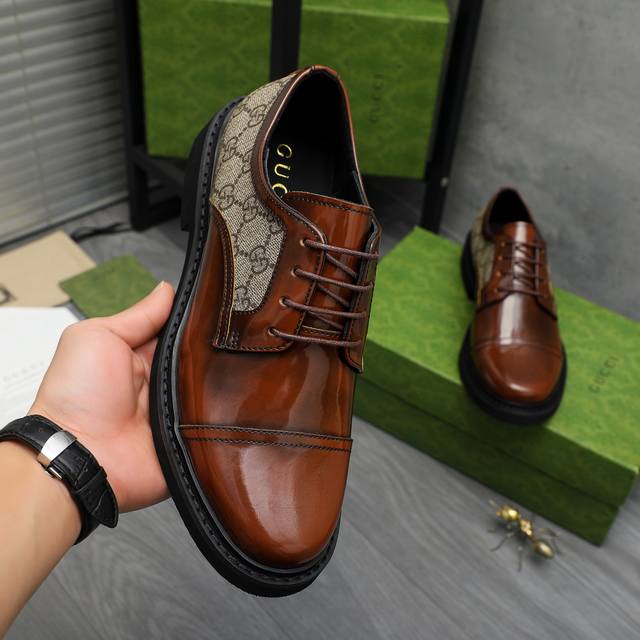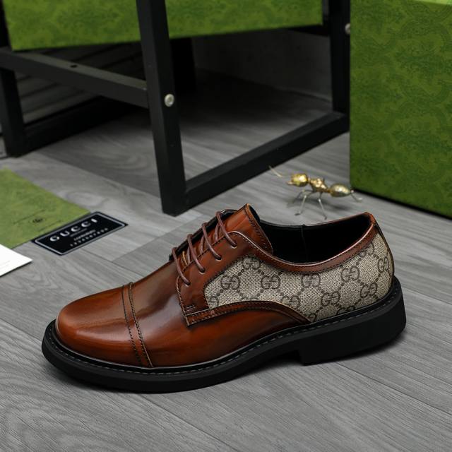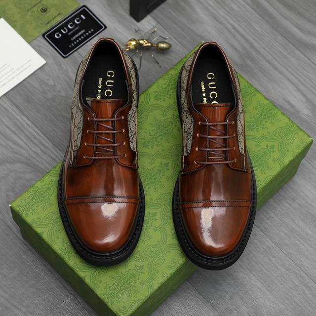 Factory direct price men's shoes and sportswear original product. Trademark: Gucci business casual leather shoes. Sizes: 38-44. Material: Selected pearlescent cowhide upper, cowhide lining, original rubber outsole.