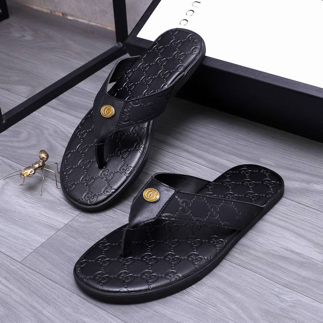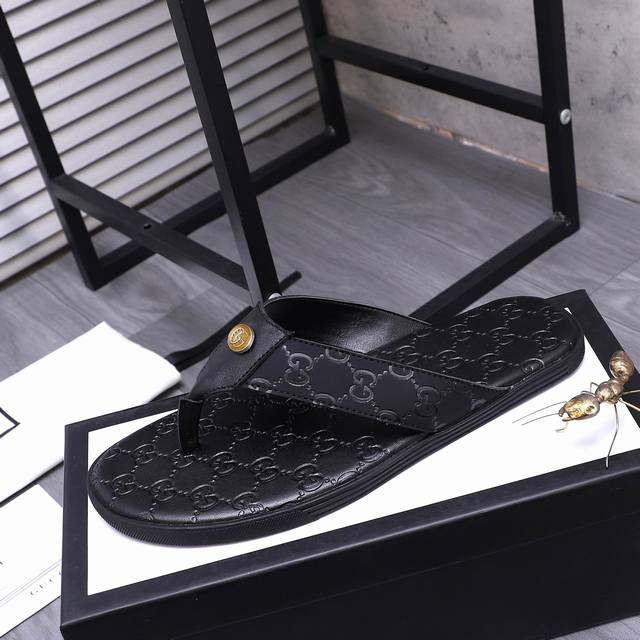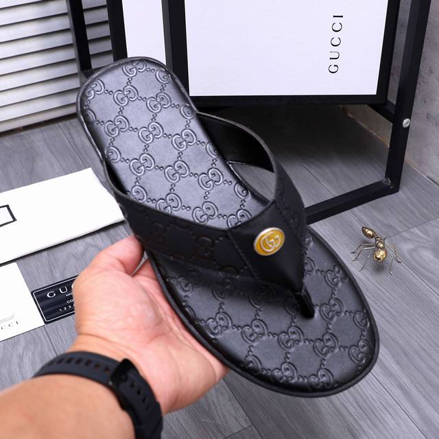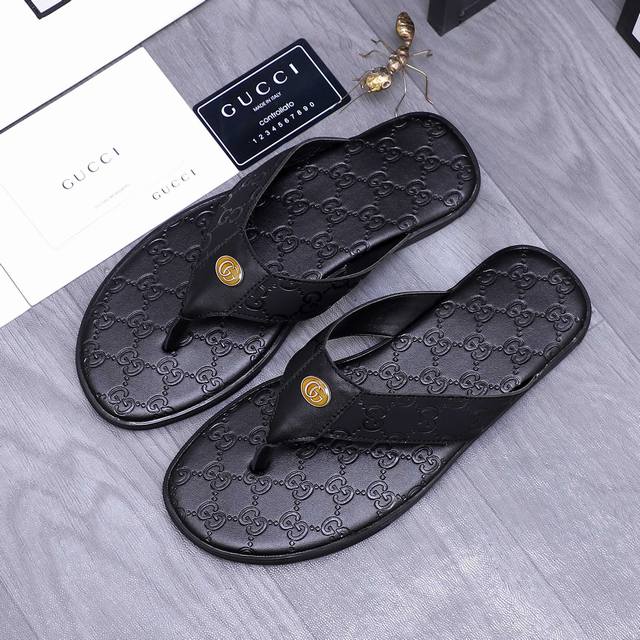 Factory direct price men's shoes and sportswear original single product. Trademark: Gucci flip-flops. Sizes : 38-45, 46. Custom orders are not accepted. Material: Selected cowhide leather with webbing upper, microfiber lining on the instep, and rubber outsole.
