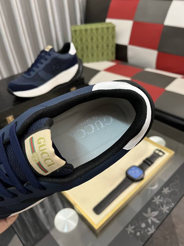 Factory direct price men's sports shoes, original Gucci, latest hot-selling casual shoes, top brand luxury~ top-quality~. Same product sold in boutiques. Original embossed calfskin leather, comfortable sheepskin lining. Sizes: 38-443 colors available.