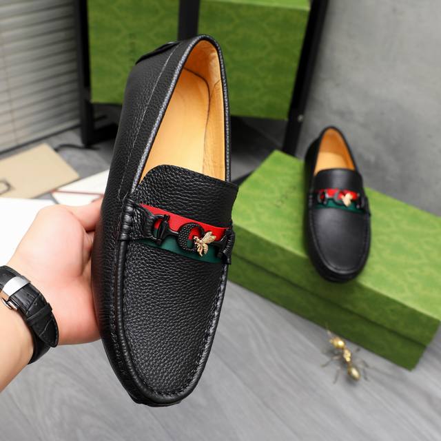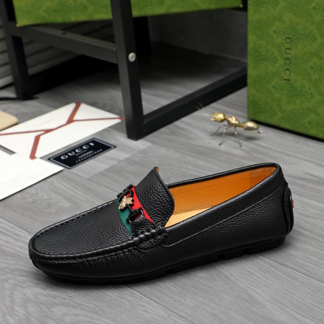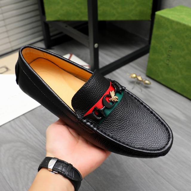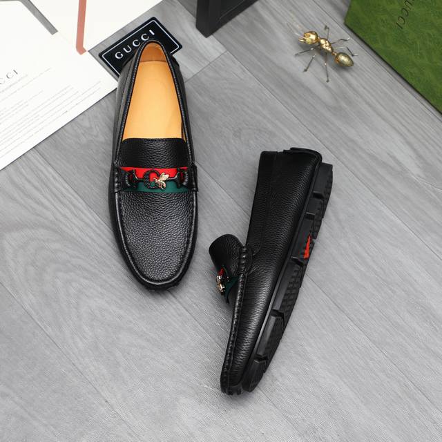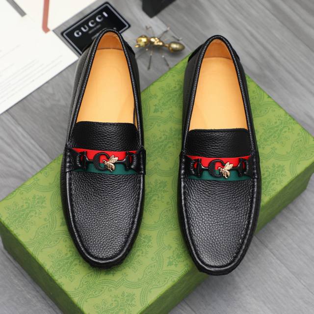Factory direct price men's sports shoes original product. Trademark: Gucci casual slip-on men's shoes. Sizes: 38-45. Material: Selected lychee-textured cowhide upper, pigskin lining, rubber outsole.