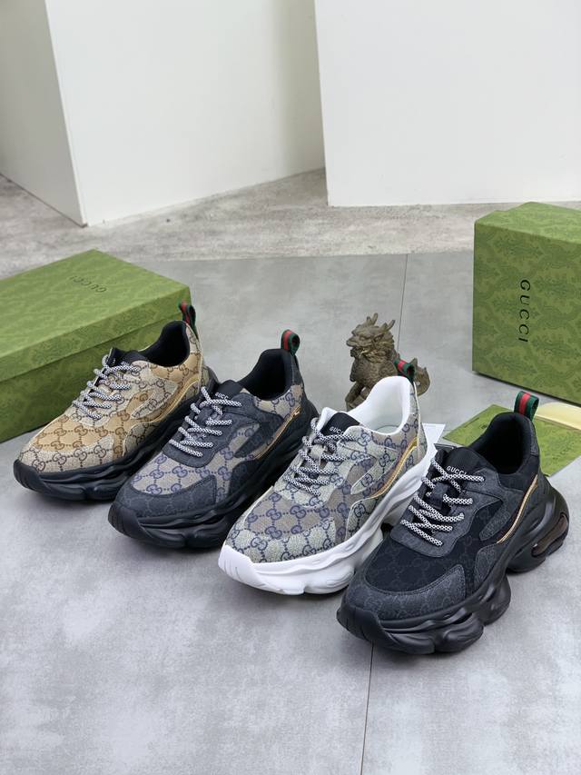 Factory direct price men's sports shoes, original single Gucci, latest official style casual fashion men's shoes, popular style with a simple and stylish design, exclusive for trendy men. Unique official brand double G element Gucci original decoration, fashionable and generous, original suede calfskin upper, imported top-layer pigskin lining, official brand specified wear-resistant and lightweight original rubber casual outsole, classic style, real product photos, sizes 38-44, 4 colors available.