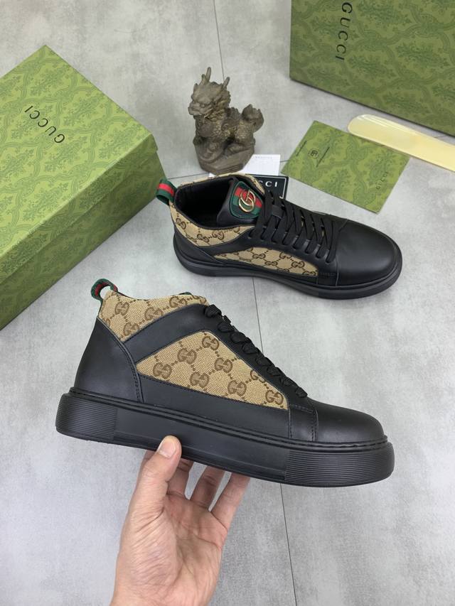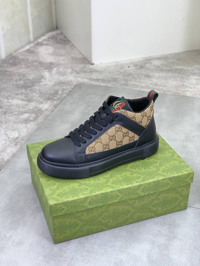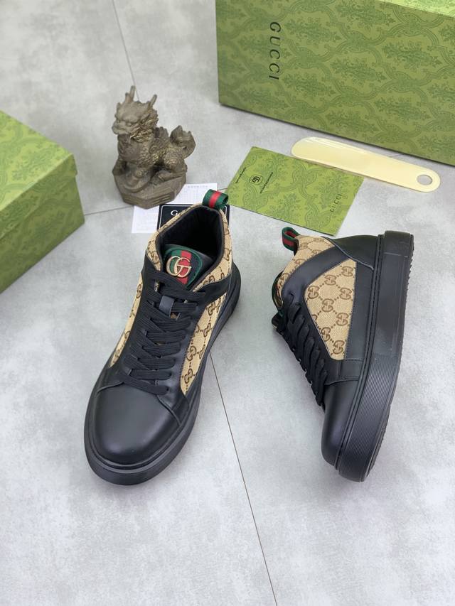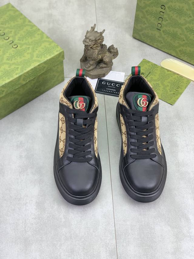 Factory direct price men's sports shoes, original single Gucci, latest official style casual fashion men's shoes, popular style with a simple and stylish design, exclusive for trendy men. Unique official brand double G element Gucci original decoration, fashionable and generous, original suede calfskin upper, imported top-layer pigskin lining, official brand specified wear-resistant and lightweight original rubber casual outsole, classic style, real product photos, sizes 38-44, 2 colors available.