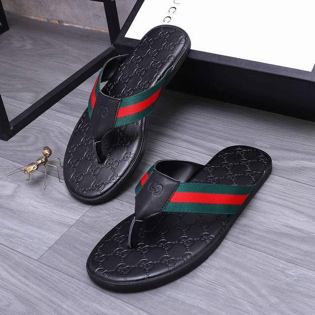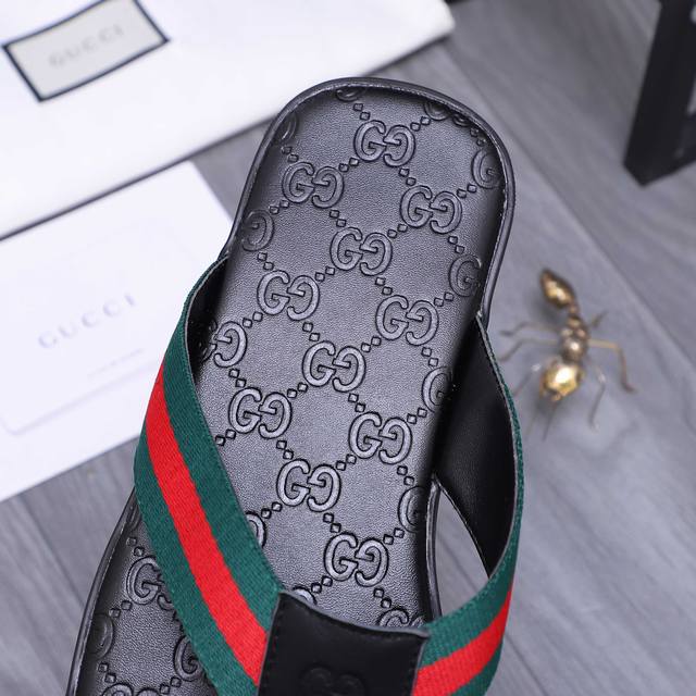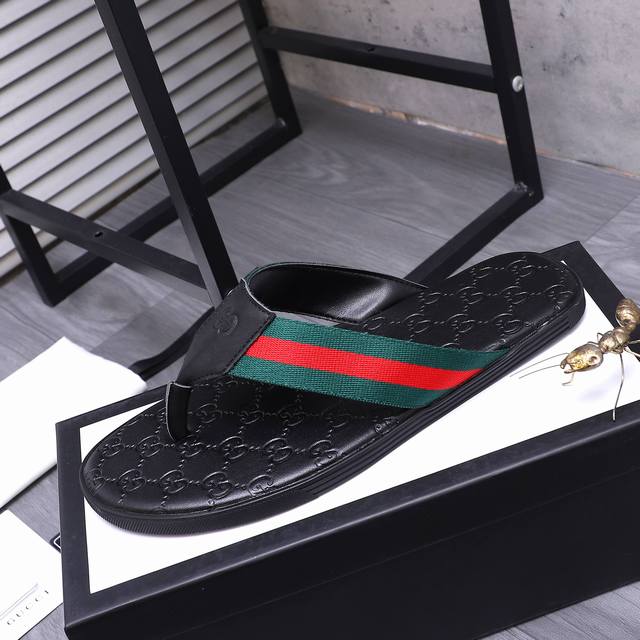Factory direct price men's sportswear original single product. Trademark: Gucci flip-flops. Sizes: 38-45, 46. Custom orders are not accepted. Material: Selected cowhide leather with webbing upper, microfiber lining on the instep, and rubber outsole.