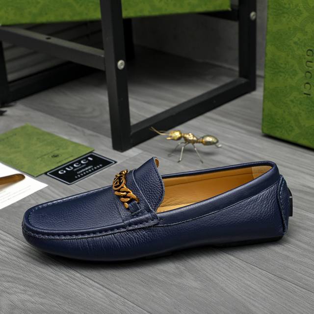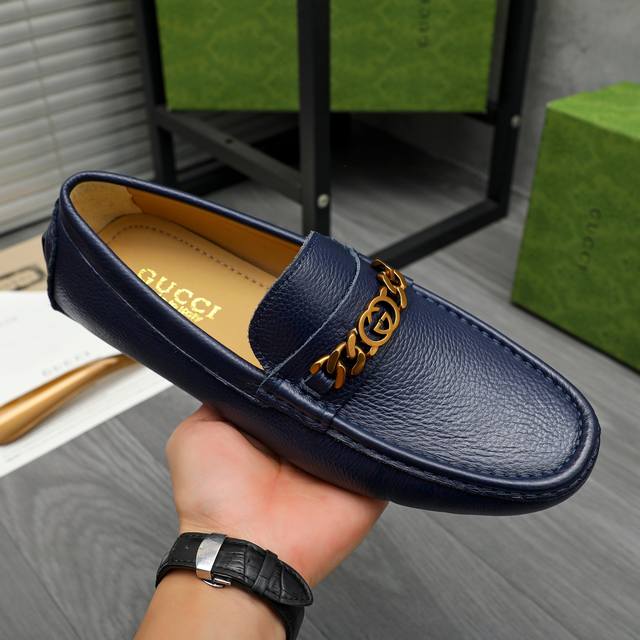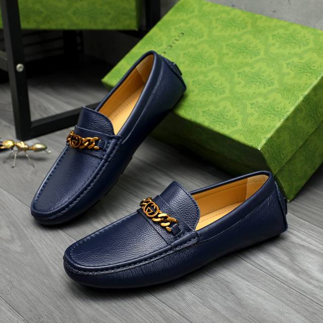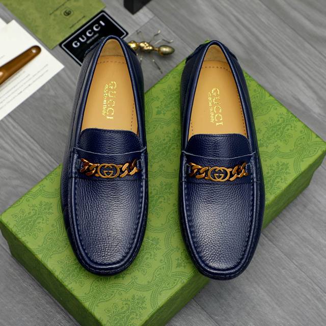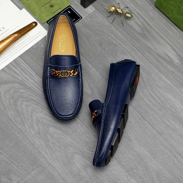 Factory direct price product: Gucci casual slip-on men's shoes. True to size: 38-44. Materials: Selected lychee-textured cowhide upper, sheepskin lining, rubber outsole.