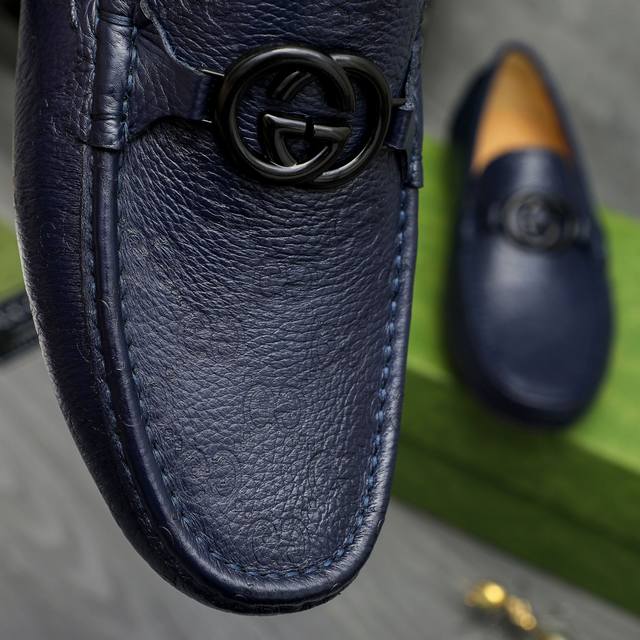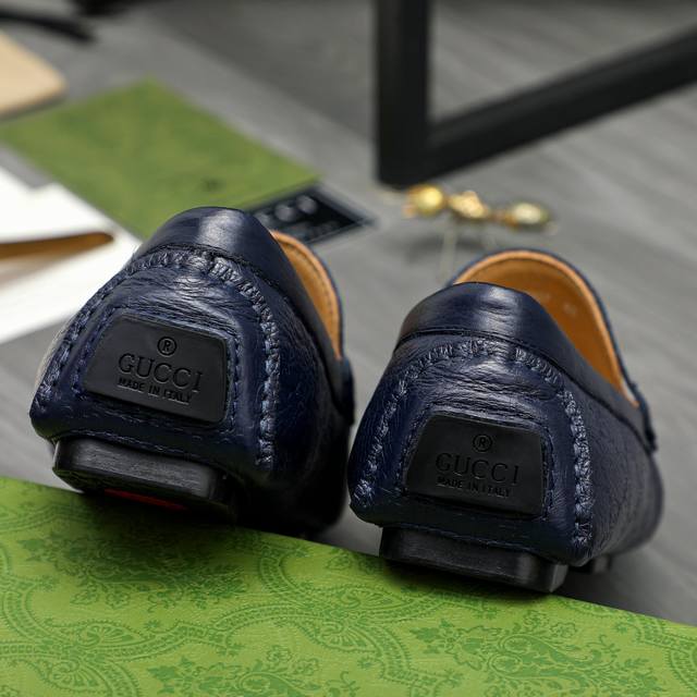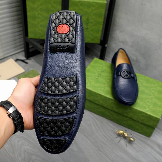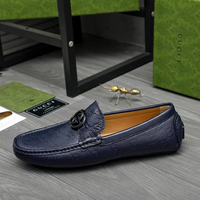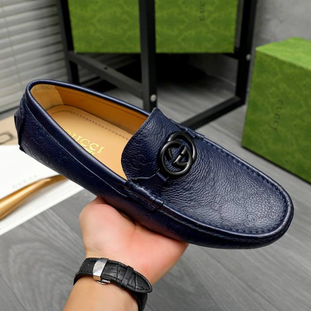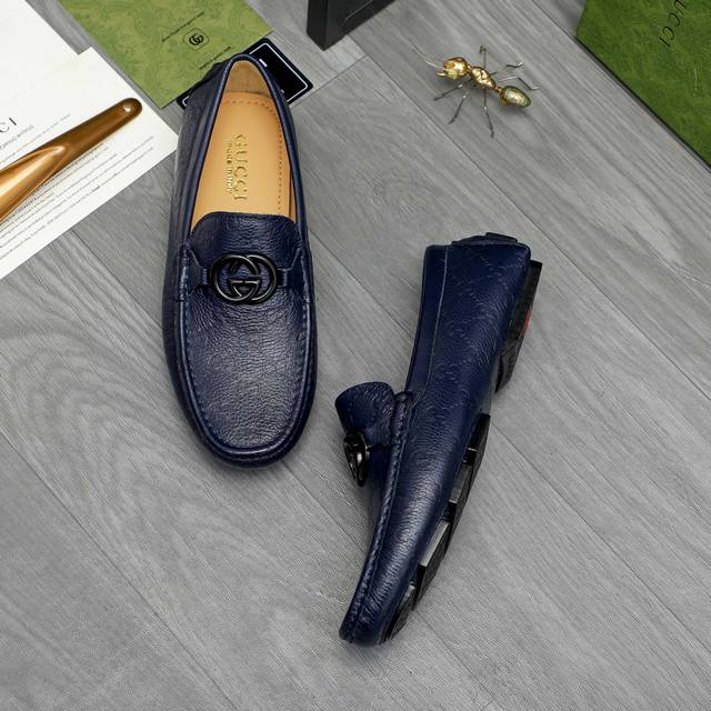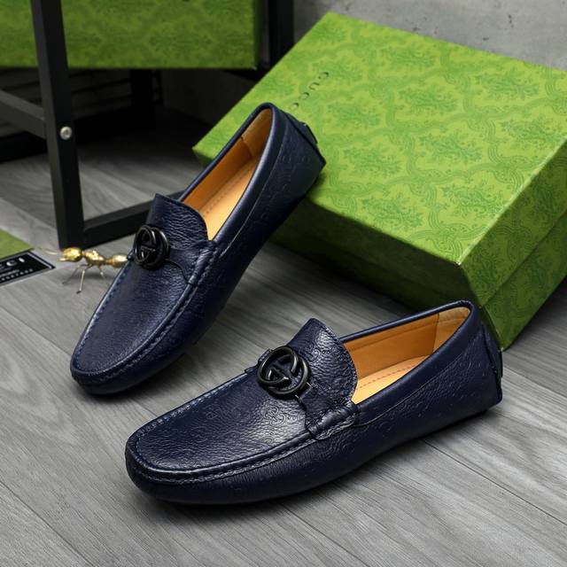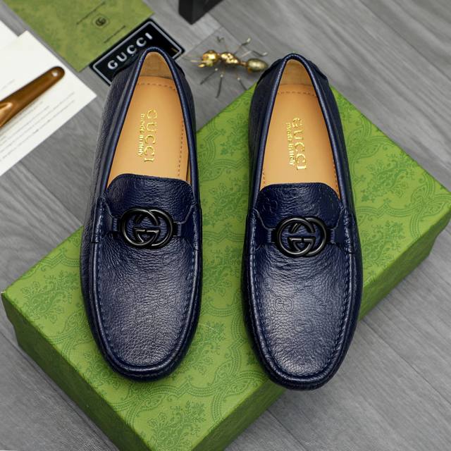 Factory direct price product: Gucci casual slip-on men's shoes. True to size: 38-44. Materials: Selected lychee-textured cowhide upper, sheepskin lining, rubber outsole.