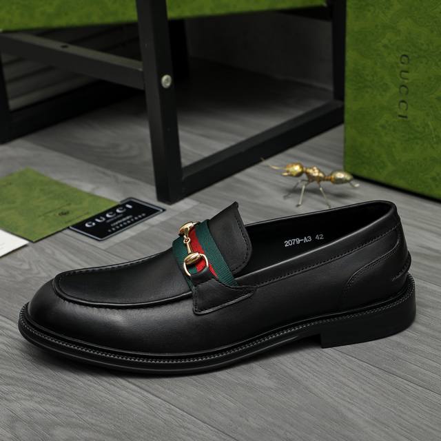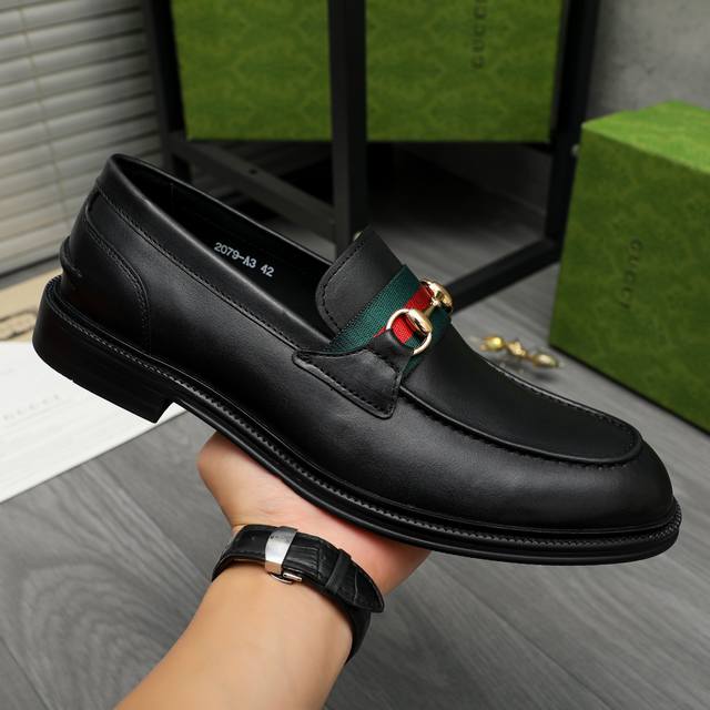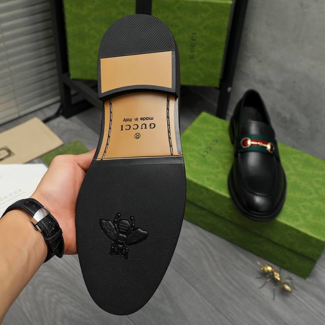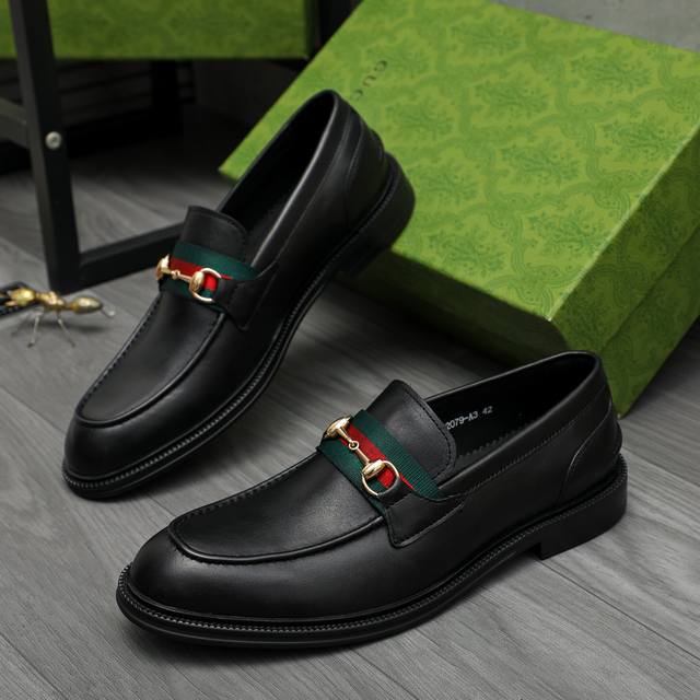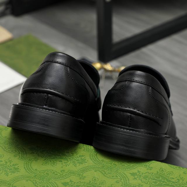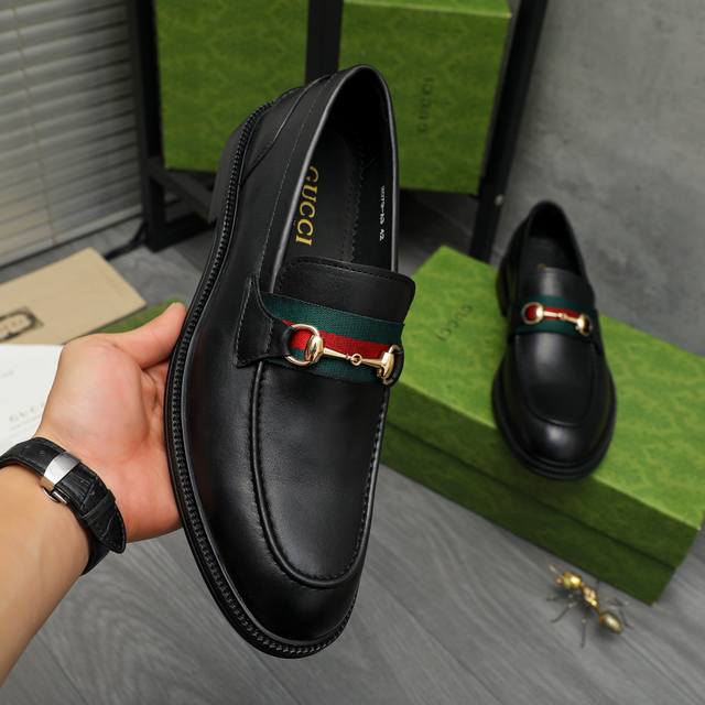 Factory direct price product trademark: Gucci business slip-on leather shoes. True to size: 39-45. Size 45 is custom-made and non-refundable. Product materials: Selected high-quality cowhide upper, cowhide lining, original rubber outsole.