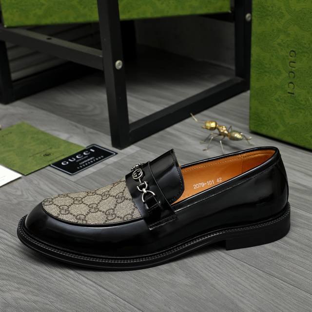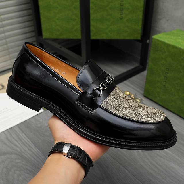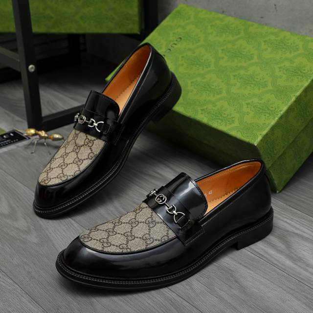 Factory direct price product trademark: Gucci business slip-on leather shoes. True to size: 39-45. Size 45 is custom-made and non-refundable. Product materials: Selected cowhide upper, cowhide lining, original rubber outsole.