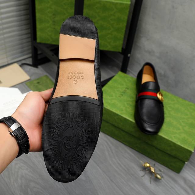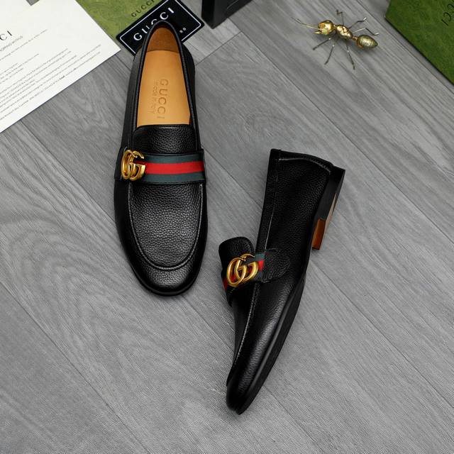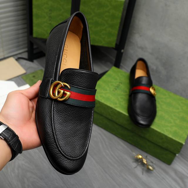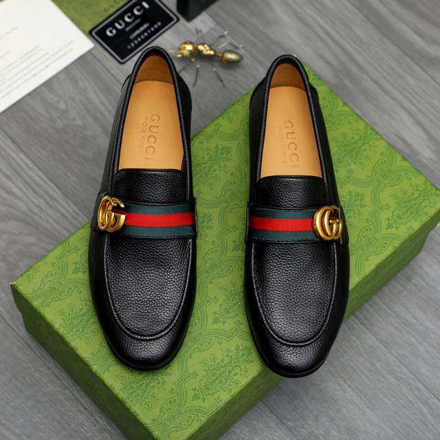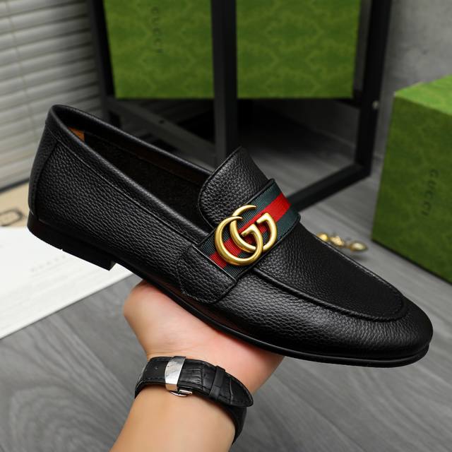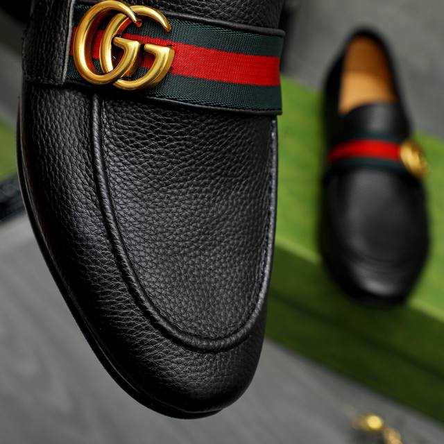 Factory direct price product trademark: Gucci business slip-on leather shoes. True to size: 38-44, 37, 45, 46. Custom orders are non-refundable. Product materials: Selected lychee-textured cowhide upper, cowhide insole, original outsole.