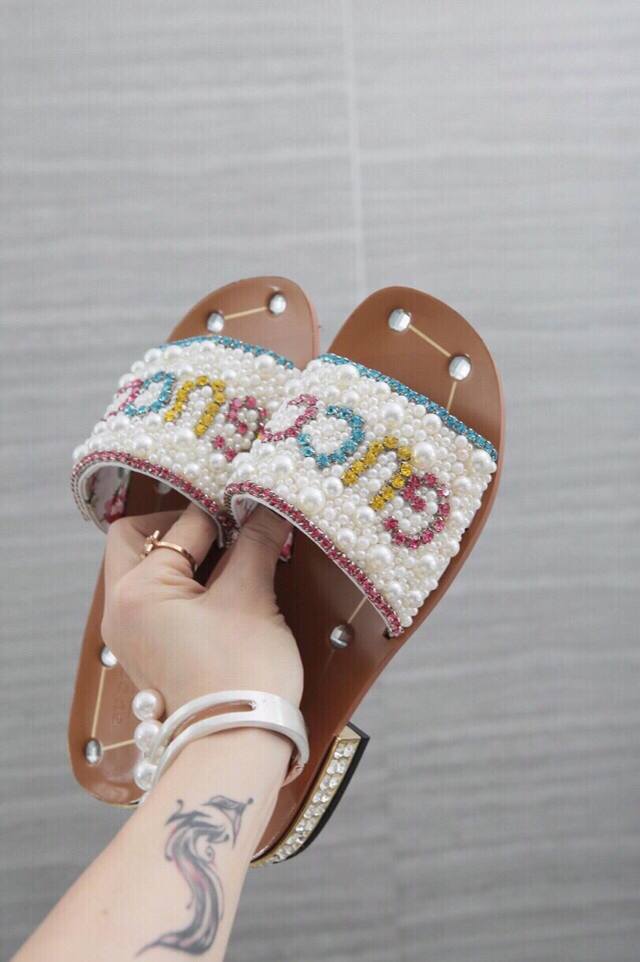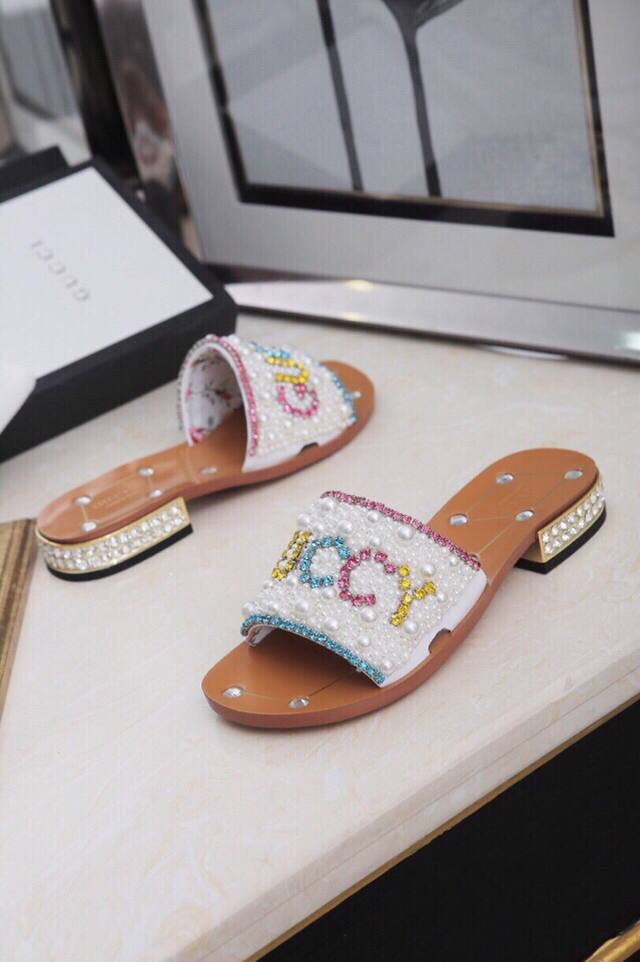 Factory direct price women's shoes and sportswear original single Gucci latest hot-selling style is now on sale. Made with original molds from boutiques, these are luxury items loved by top celebrities. High quality creates a perfect combination of classic and high-end elegance, showcasing your noble and extraordinary temperament. A favorite of trendy beauties, the upper is made of calfskin with imported rhinestones and high-end pearls. The lining is made of original Gucci classic floral leather. Available in classic and versatile white, black, and gray. The outsole is made of imported non-slip and wear-resistant rubber. Sizes 35-43. [[The rhinestones and pearls are hand-stitched, a complex and difficult process.]] A top-quality item among top-quality products.