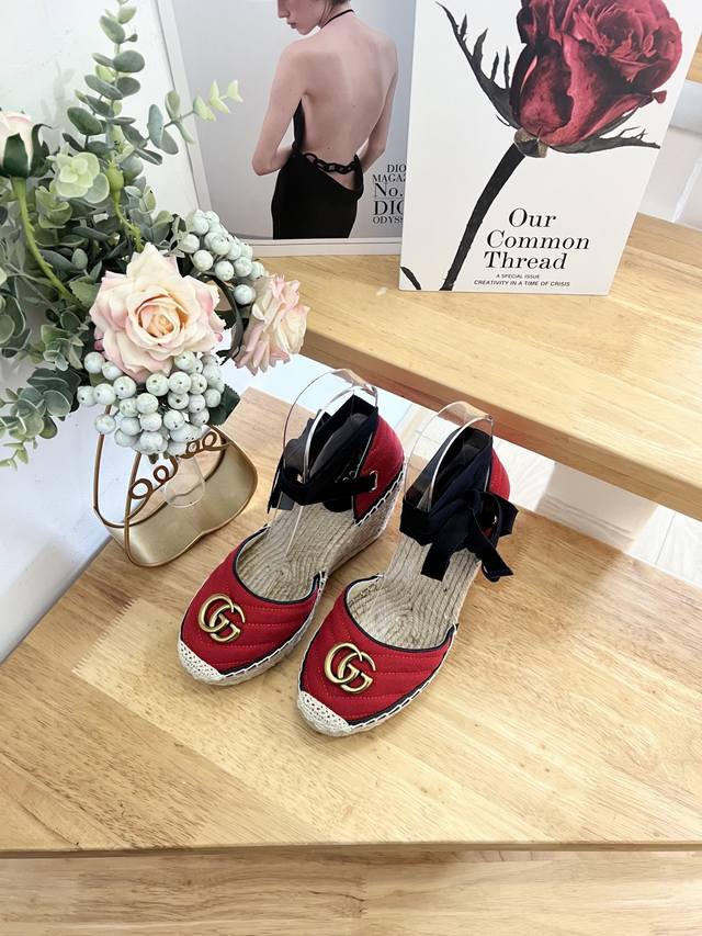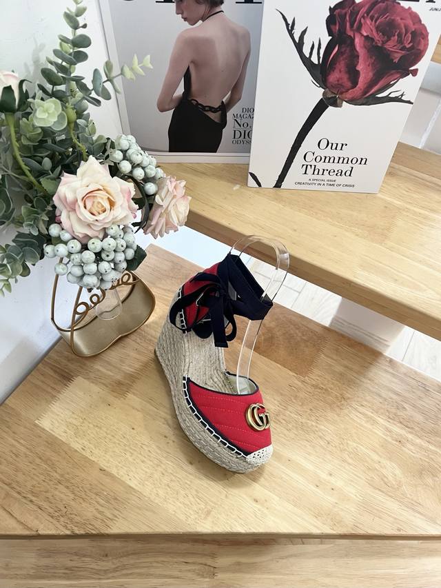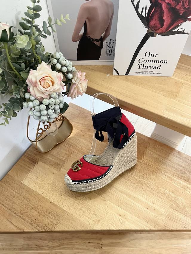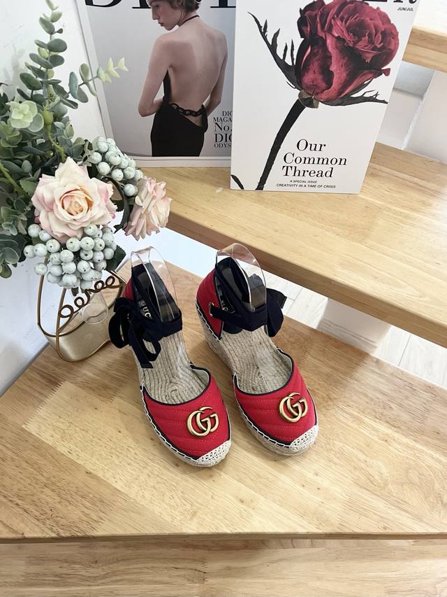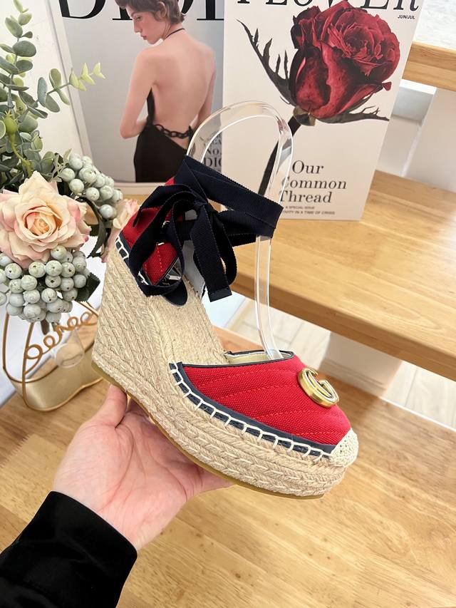 Factory direct price women's shoes sports original single Ddd 26Ss early spring Gucci espadrille platform wedge sandals can bring a touch of modern style to your summer outfit. Ddd Upper: leather, fabric Ddd Lining: leather Ddd Outsole: leather insole, rubber outsole Ddd Open toe round toe Ddd Made in Spain Ddd Fits normal size Ddd Slightly wide Ddd International standard size Ddd Platform 10cm Ddd Sizes: 36-41 DDD